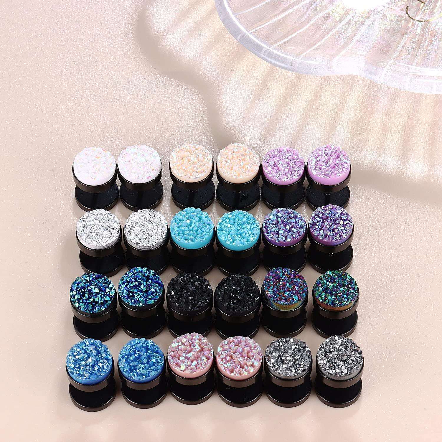 Details UNIQUE DESIGN: Faux Gauge Earrings With Colorful Sand Glitter Makes You More Eye-Catching; With Different Color Changes In Different Angles And Light; The Unique Design Gives You A New Experience.STUD EARRINGS SET: One Order Includes 12 Pairs Of 16g Faux Plug Earrings With A Diameter Of 10mm. The Rich Colors Give You More Options To Match; And The Cool Punk Style Studs Show Your Personality And Charm.MATERIAL: The Fake Gauges Are Made Of Healthy Surgical Steel With High Polished Surface; Safe And Comfortable To Wear. Perfect For Sensitive Ears And Easy To Put In; Suitable For Both Men And Women Of All Ages.SUITABLE OCCASION: Beautiful And Shiny Druzy Stud Earrings Are Suitable For Any Occasion; You Can Wear Them To Parties; Weddings; Concerts; Ceremonies And Other Special Occasions. These Sparkling Ear Studs Are Also Perfect Gifts For Birthday; Christmas Day; Anniversary Day; Valentine'S Day And More.