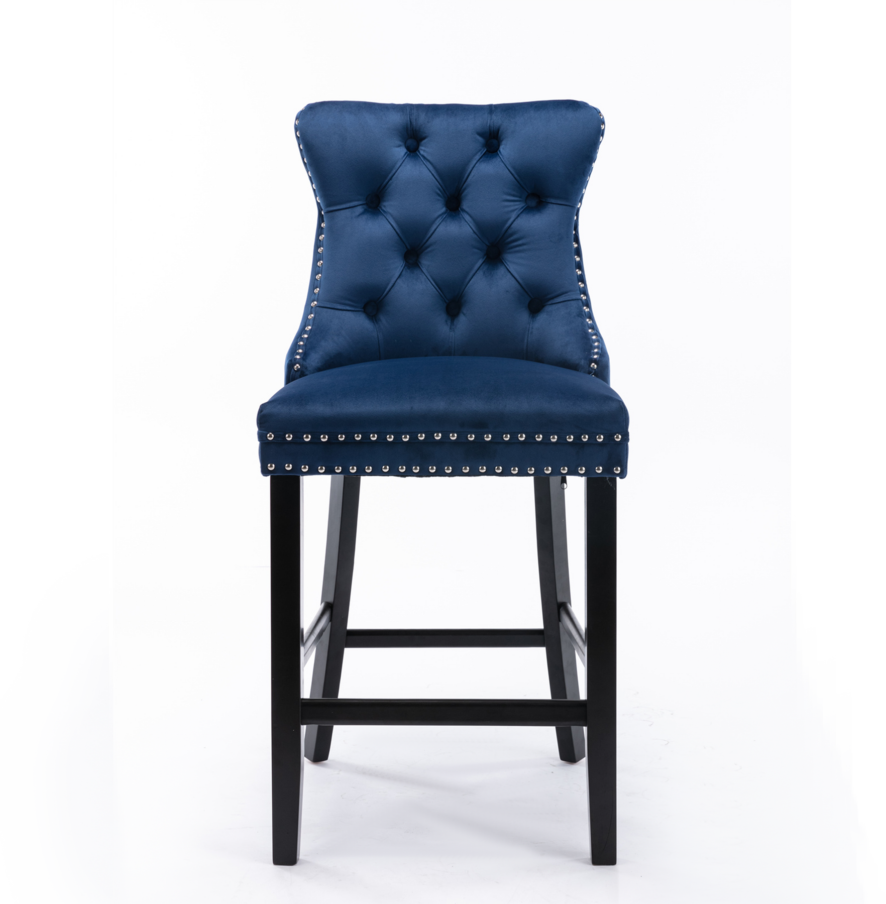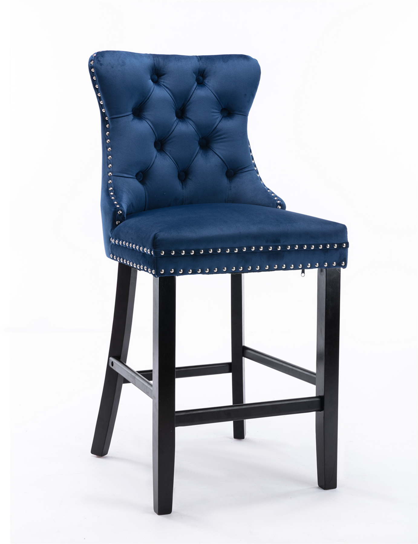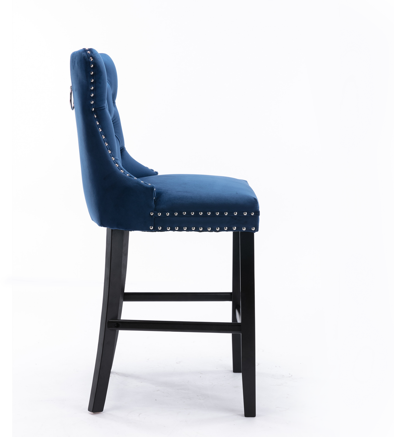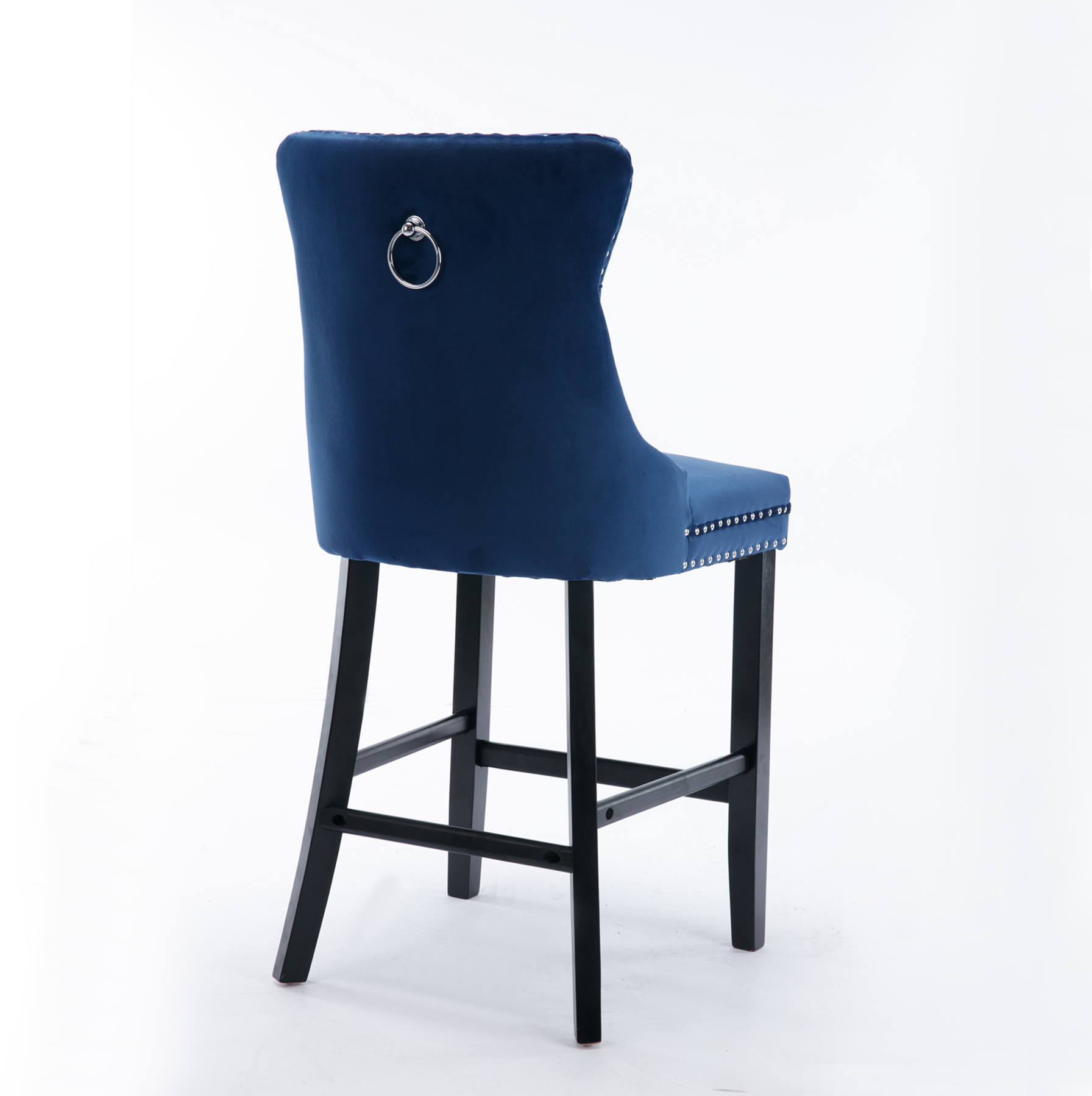 2 pcs High-End Chrome Detailed Tufted Contemporary Velvet Bar Stool with Wooden Legs- Blue, Black_8