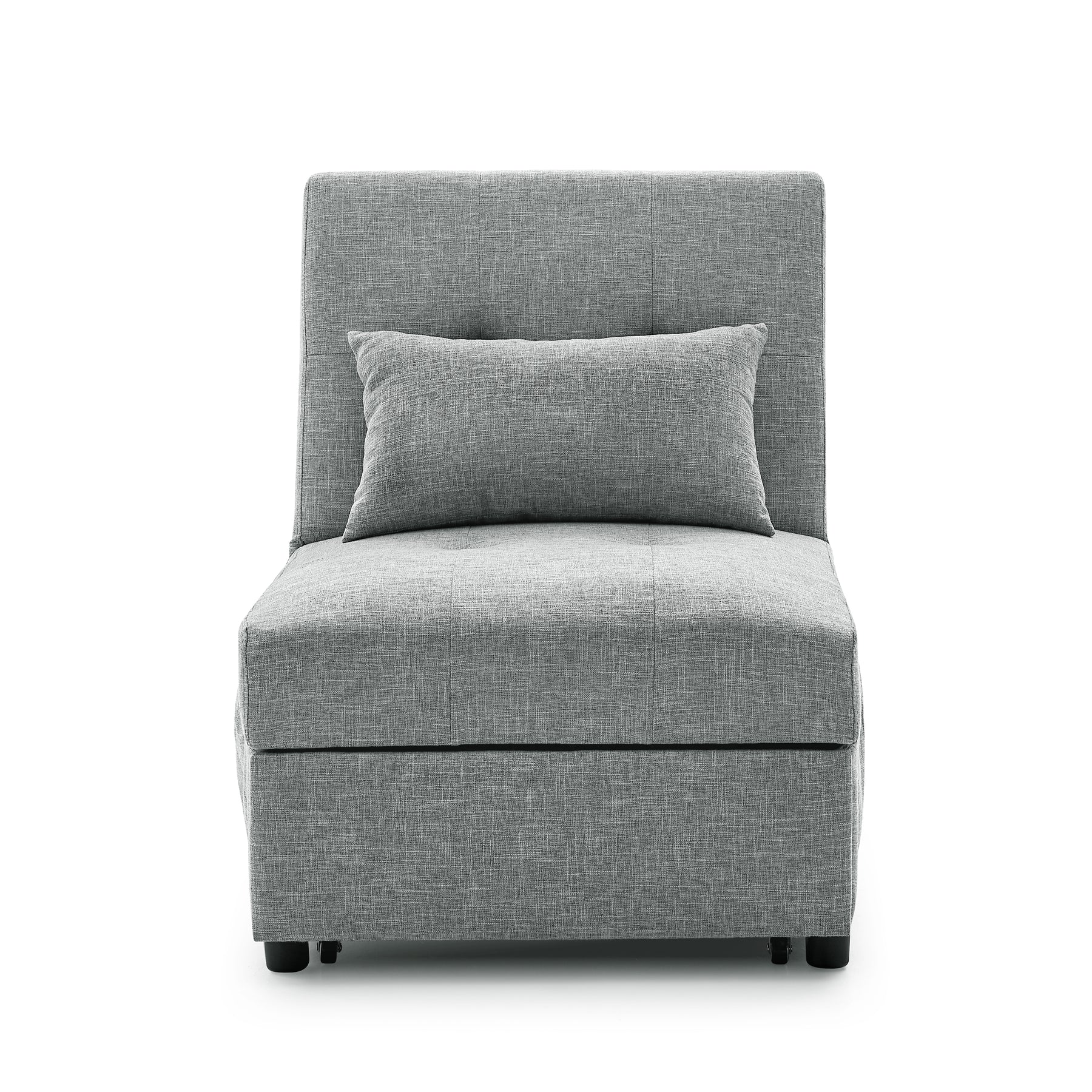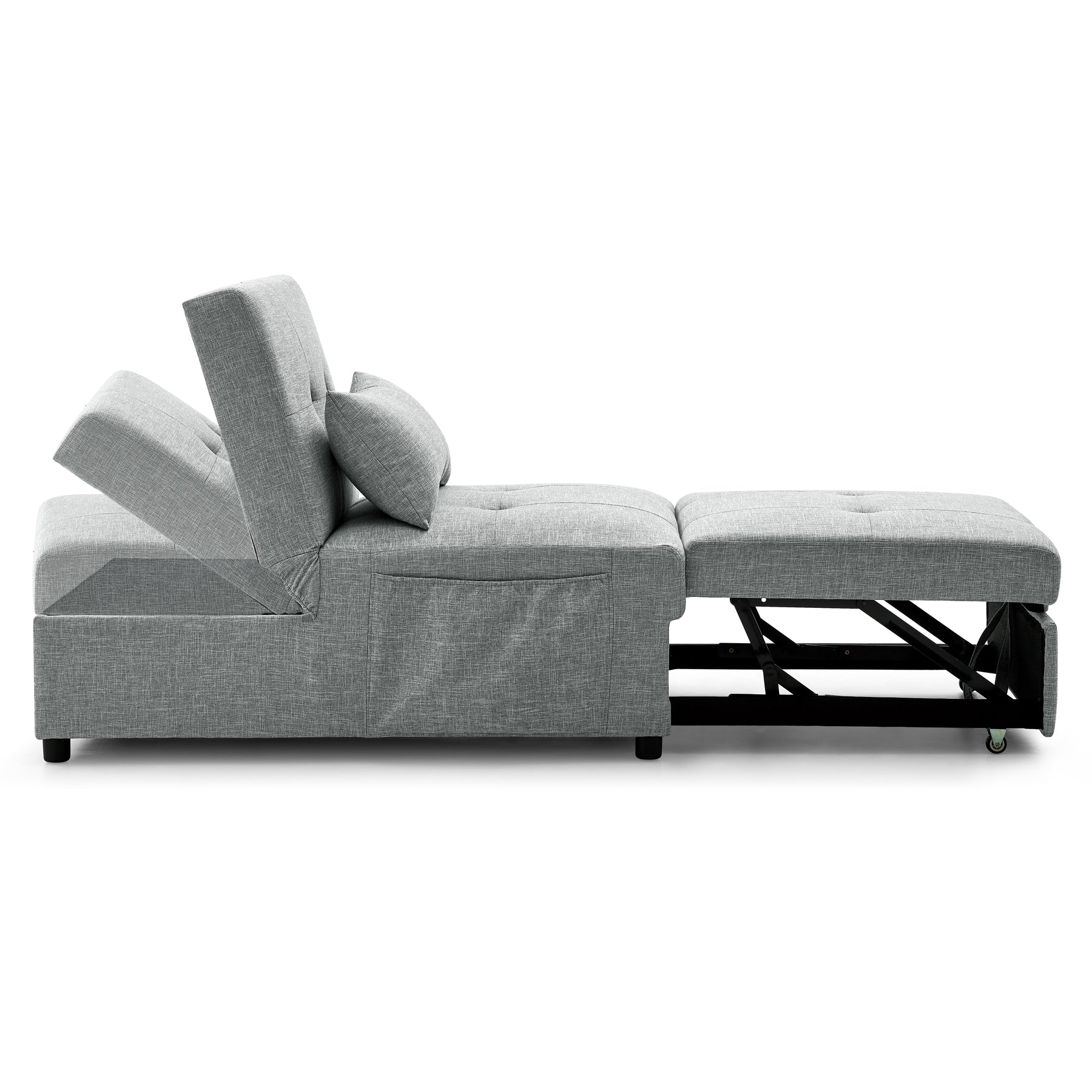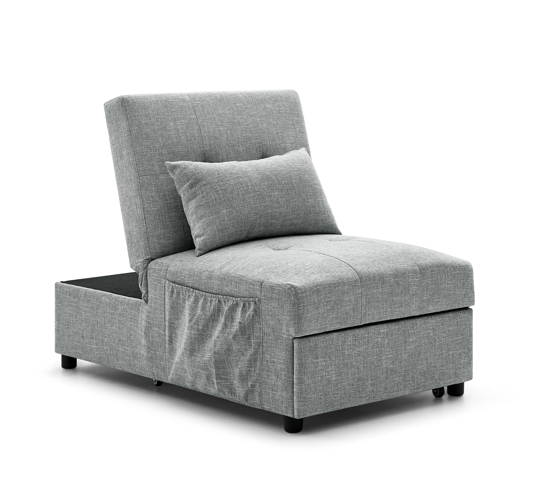 Feature: The convertible chair works as an ottoman, a chair, a sofa bed, and a chaise lounge. The multiple functions are perfect for a small space living. Product Description: This folding ottoman sleeper sofa bed can easily and quickly convert from one use to the next. The perfect pick for meeting your daily needs, this set features a contemporary look and simple style. Upholstered with fabric soft linen in a neutral hue for an inviting look, this set will provide you with unrivaled comfort. It has high-resilience sponge cushioning reinforced with spring that will support your body when seated, and easily restore their shape. Enjoy your time to unwind after a long day with this set in your living room. Expertly crafted with a solid wood frame for maximum support, this set is equipped with durability for years to come. It is complete with all the needed accessories and the instruction is provided, which includes very detailed and concise installation steps, and it will take you only a little bit of time to assemble. Product Specification: Color: Grey Material: Fabric Size: 44" x 26" x 33"H Weight: 32kg Function: Home Furniture Package Inclusion: 1 x Folding Sofa Bed 1 x Installation Kit