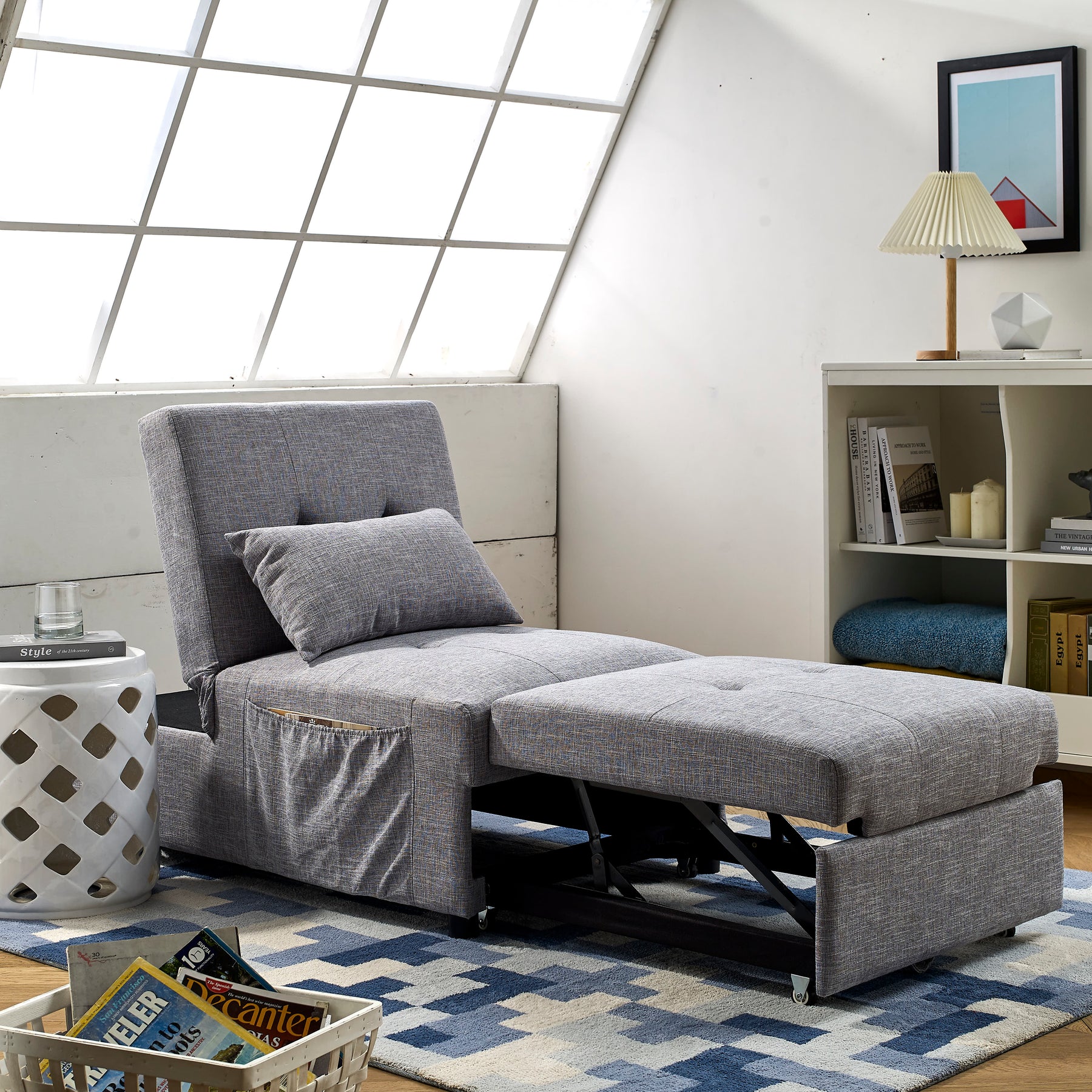 4 in 1 Folding Ottoman Sleeper Sofa Bed Chaise Lounge for Small Space Living- Grey