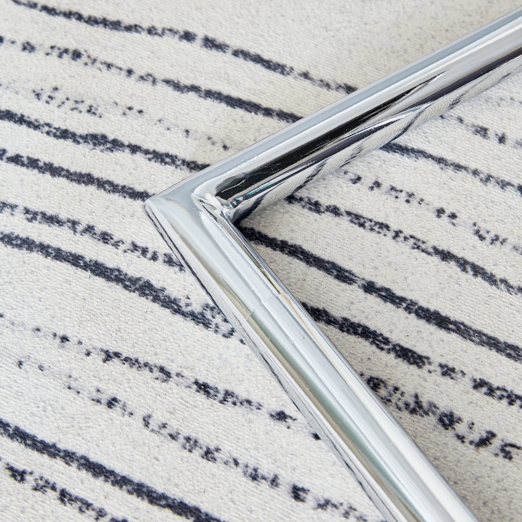 6 Pcs Faux Leather Upholstered Grid High Back Dining Chairs with Metal Base- Black, Silver_8