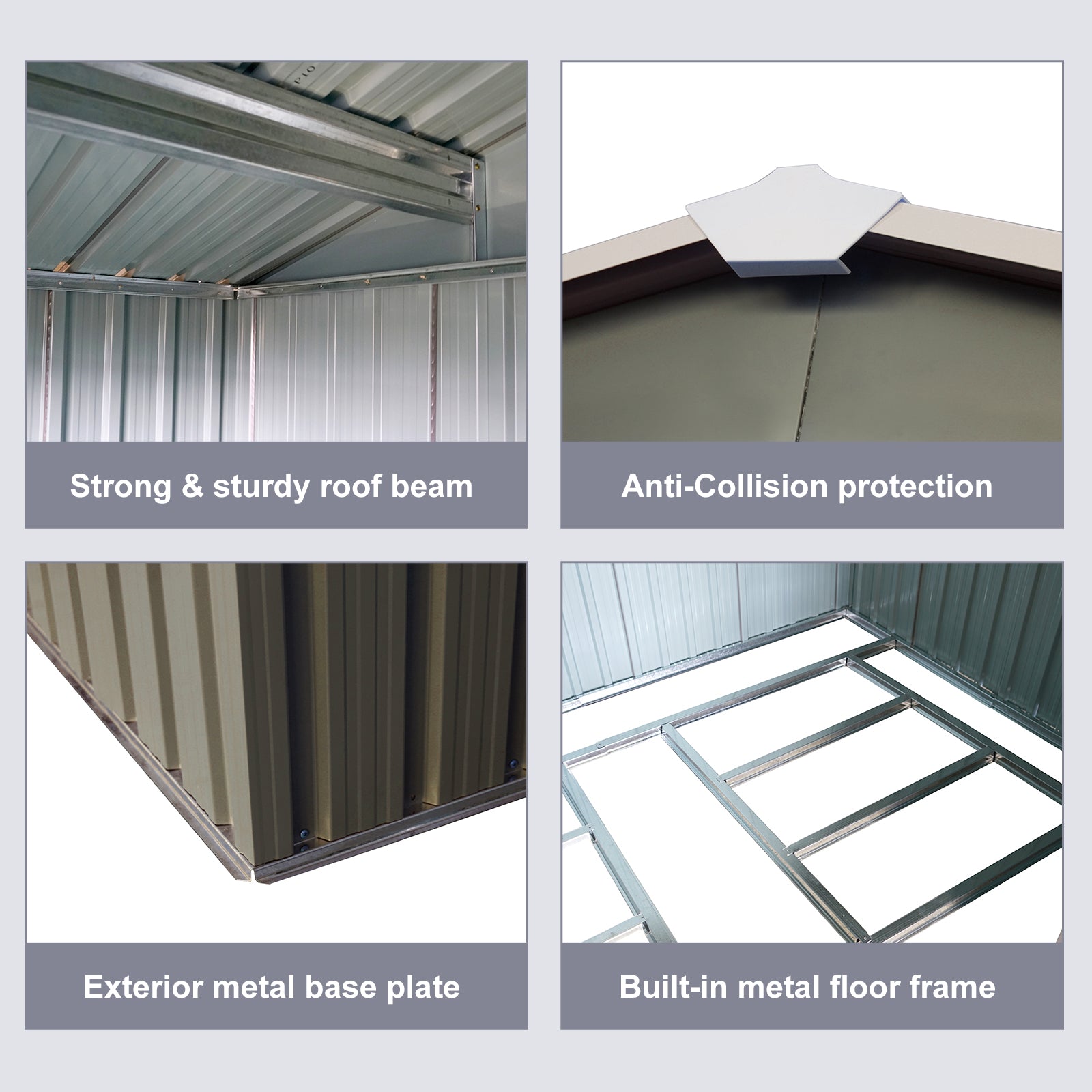 8x10ft Strong and Sturdy Outdoor Metal Storage Shed with Metal Floor Frame-Gray_6