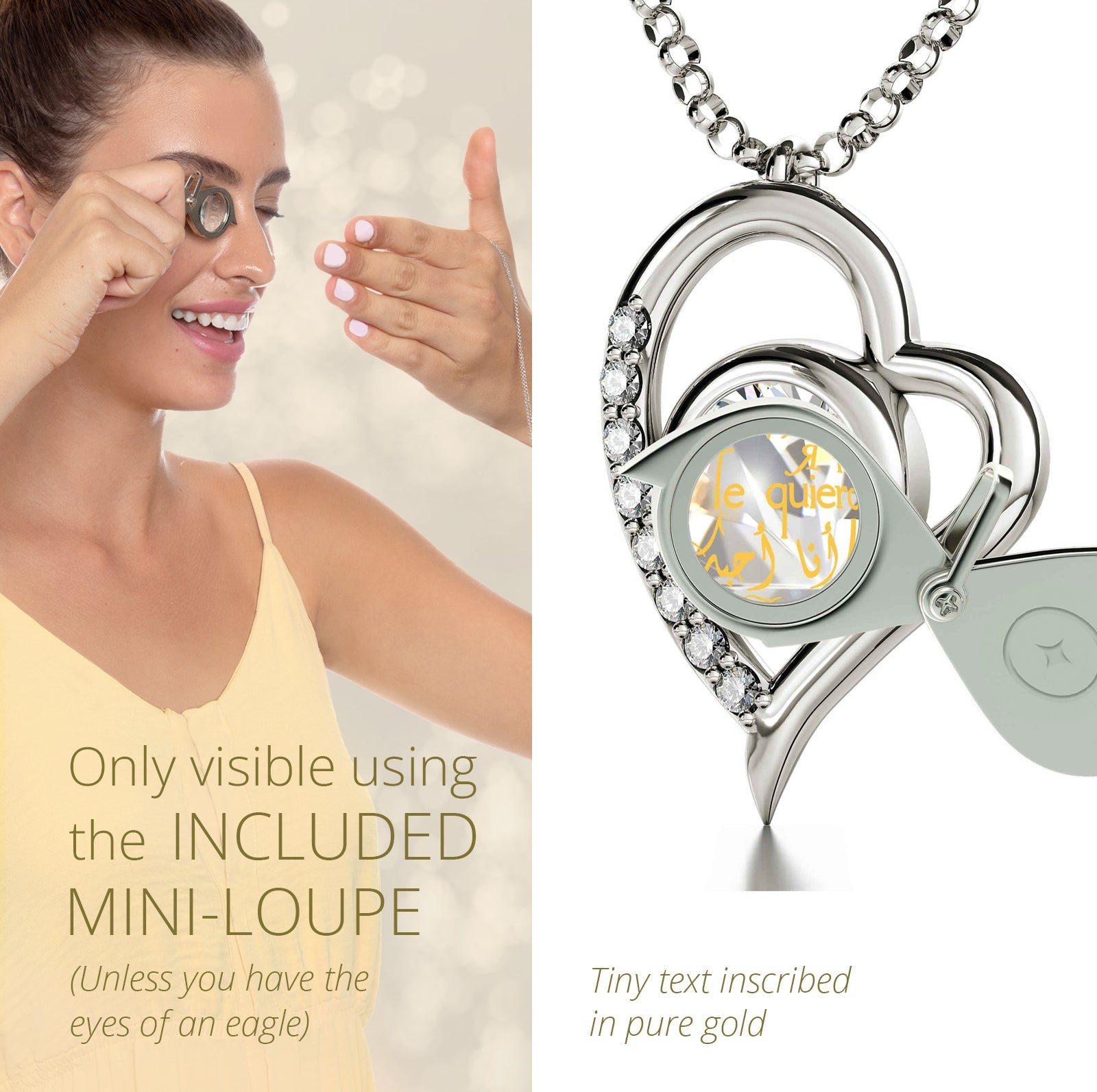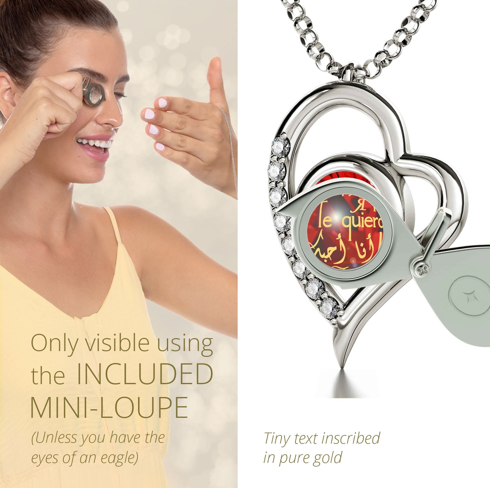 925 Sterling Silver I Love You Heart Pendant Necklace 24k Gold Inscribed in 12 Languages