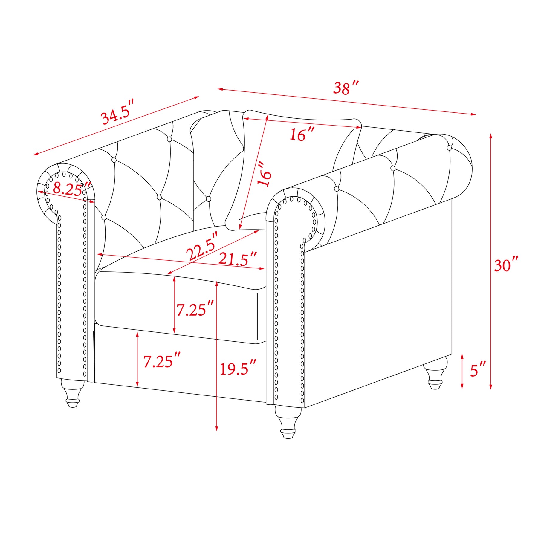 Contemporary Style Sofa Chair with Button and Copper Nail Details with Pillow- Blue_9