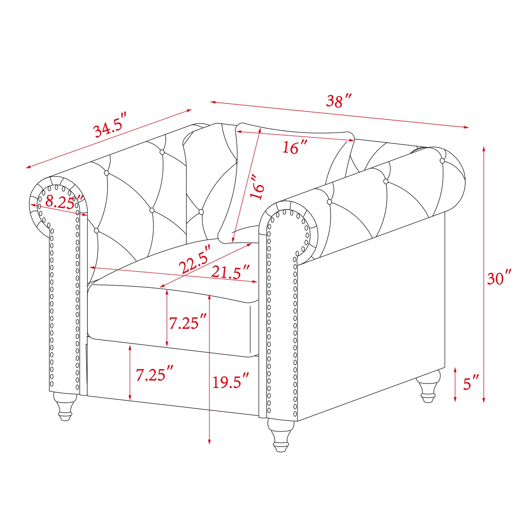 Contemporary Style Sofa Chair with Button and Copper Nail Details with Pillow- Grey_0