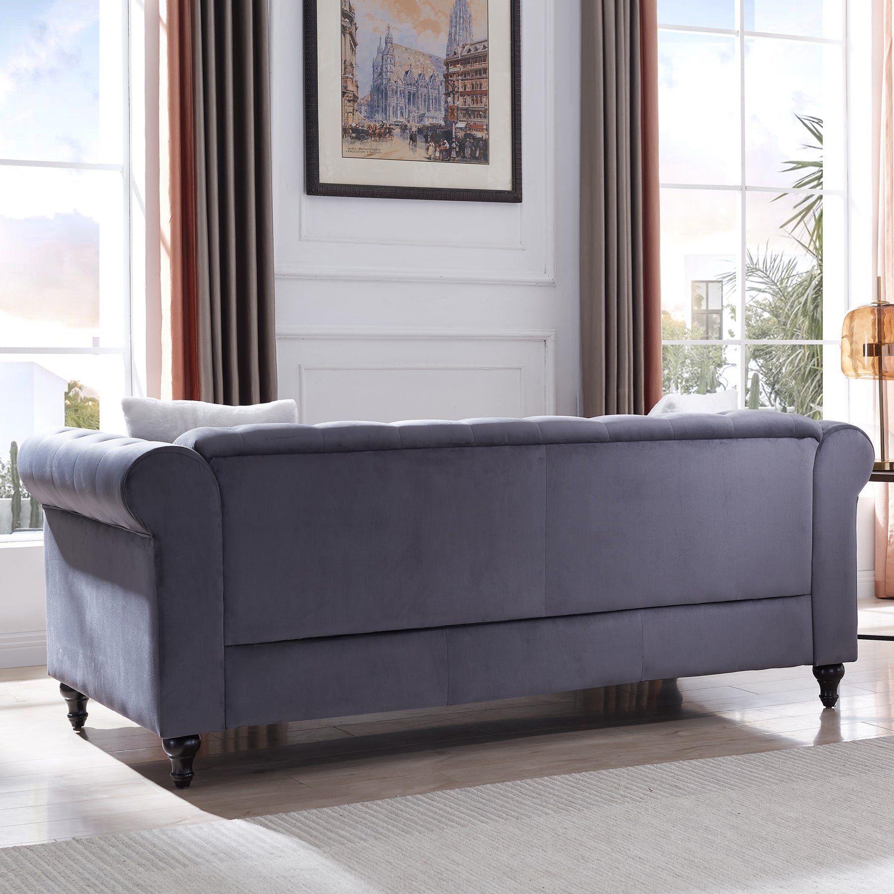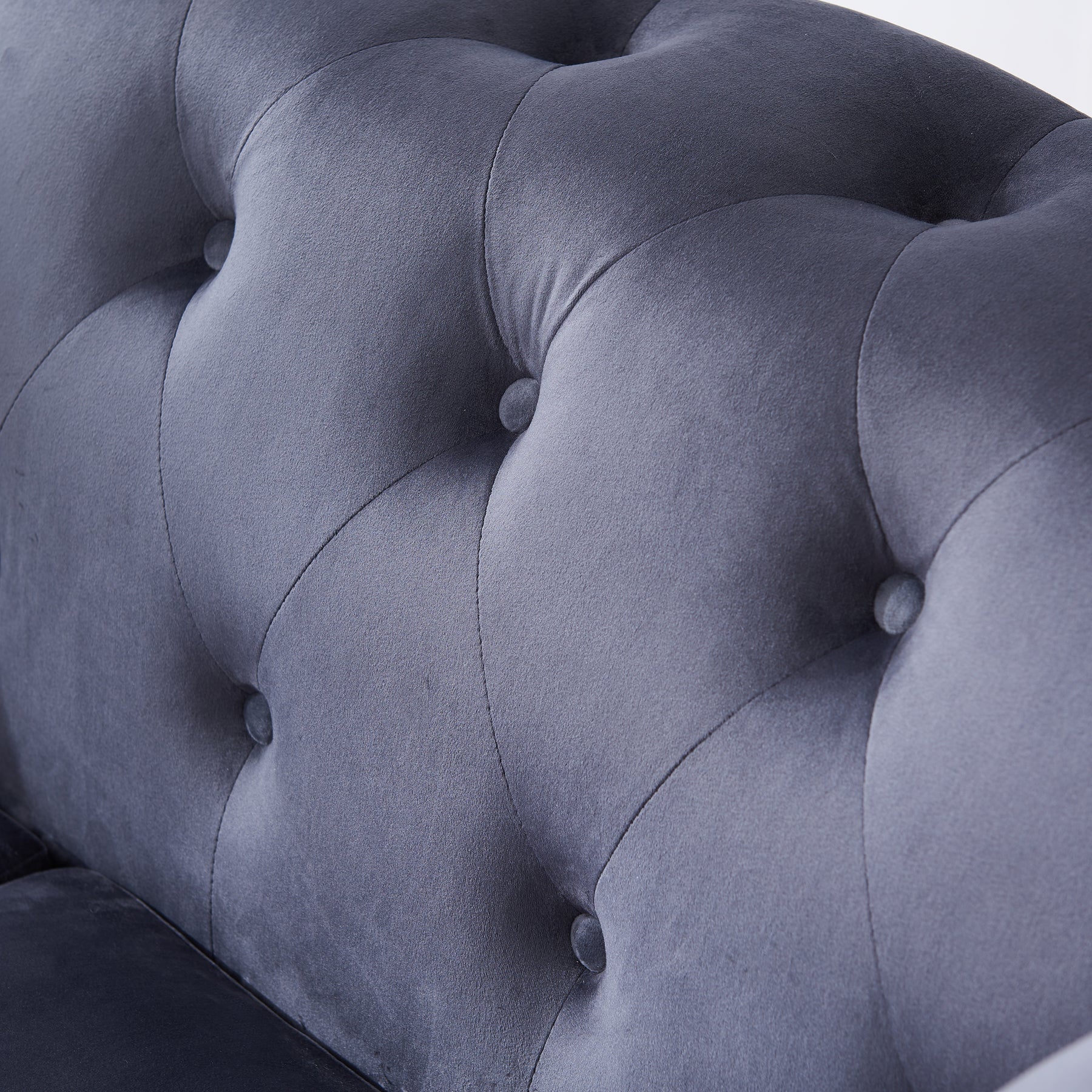 Feature: The perfect pick for meeting your aesthetic needs, this sofa features a contemporary look and a streamlined silhouette. Button tufting along arms and seat back gives a nod to the classic look, but the circular arc arms with trim make this a truly modern sofa. Product Description: Upholstered with soft velvet in a neutral hue for an inviting look, this sofa will provide unrivaled comfort. High-resilience sponge cushioning reinforced with a spring package will support your body when seated, and easily restore their shape. Enjoy your time to unwind after a long day with this set in your living room. Expertly crafted with a solid wood frame for maximum support, this set is equipped with durability for years to come. The compact structure of this sofa is suitable for a cozy living room while providing ample seating space. You can arrange them together or move the armchair according to your needs and create a harmonious overall look Product Specification: Color: Grey Material: Velvet Weight: 34kg Function: Home Furniture Package Inclusion: 1 x Sofa 1 x Pillow