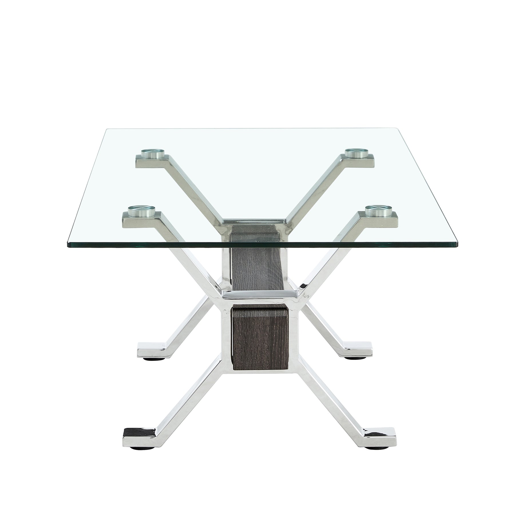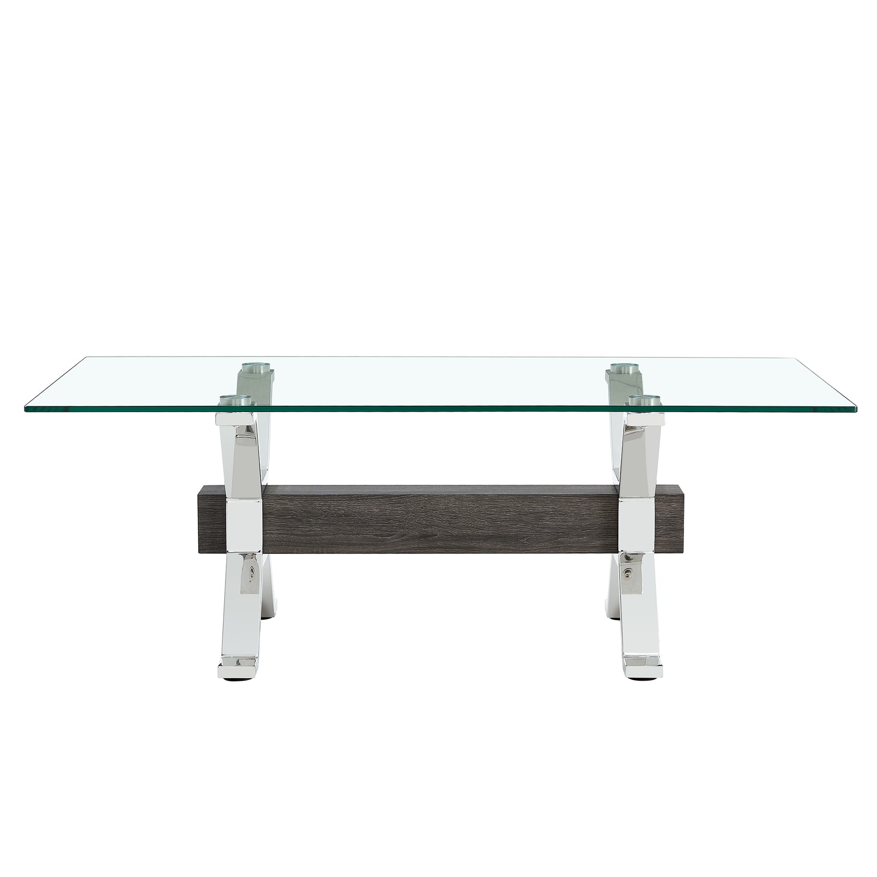 Contemporary Tempered Glass Coffee Table with Plated Metal Legs and MDF Crossbar_1