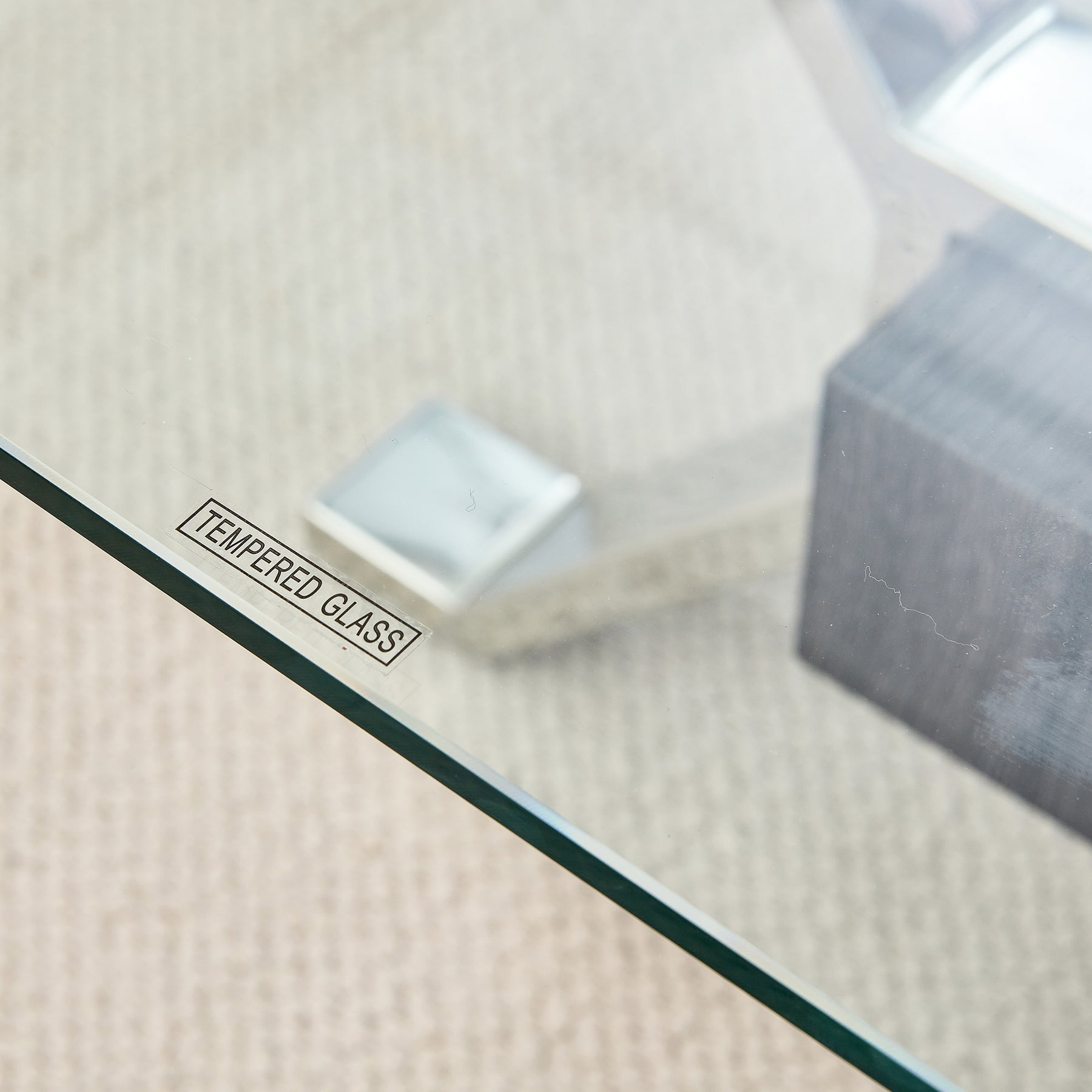 Contemporary Tempered Glass Coffee Table with Plated Metal Legs and MDF Crossbar_17