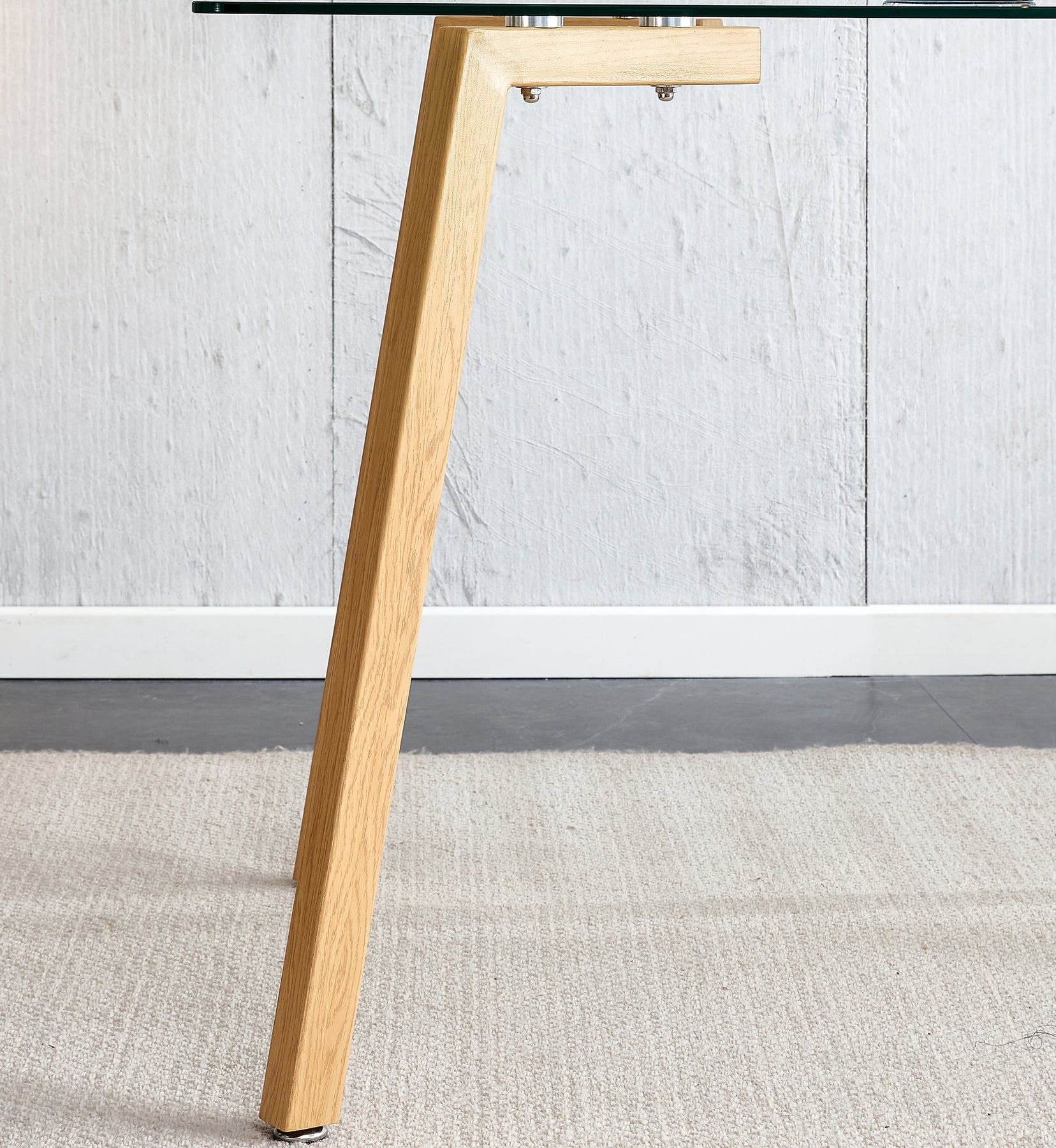 Dining Chair and Table Set- 4 Light Gray Wooden Colored Metal Leg+ 1 Glass Dining Table_7