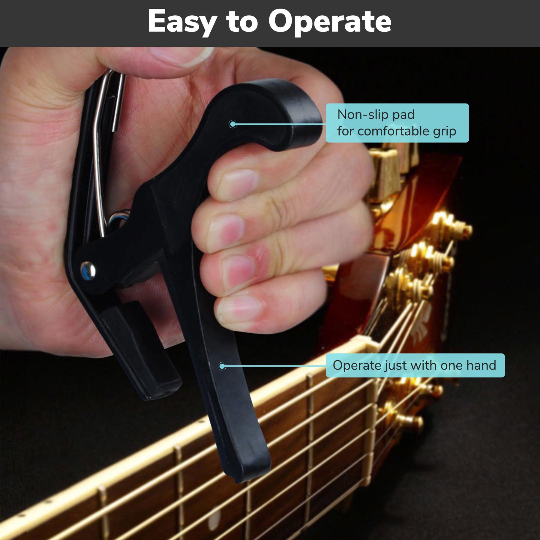 - Guitar Capo -  4"x4"x1" Trigger Type Guitar Capo designed for altering the  pitch of your guitar, allows you to play your music without changing  fingering and brings you different performance inspirations