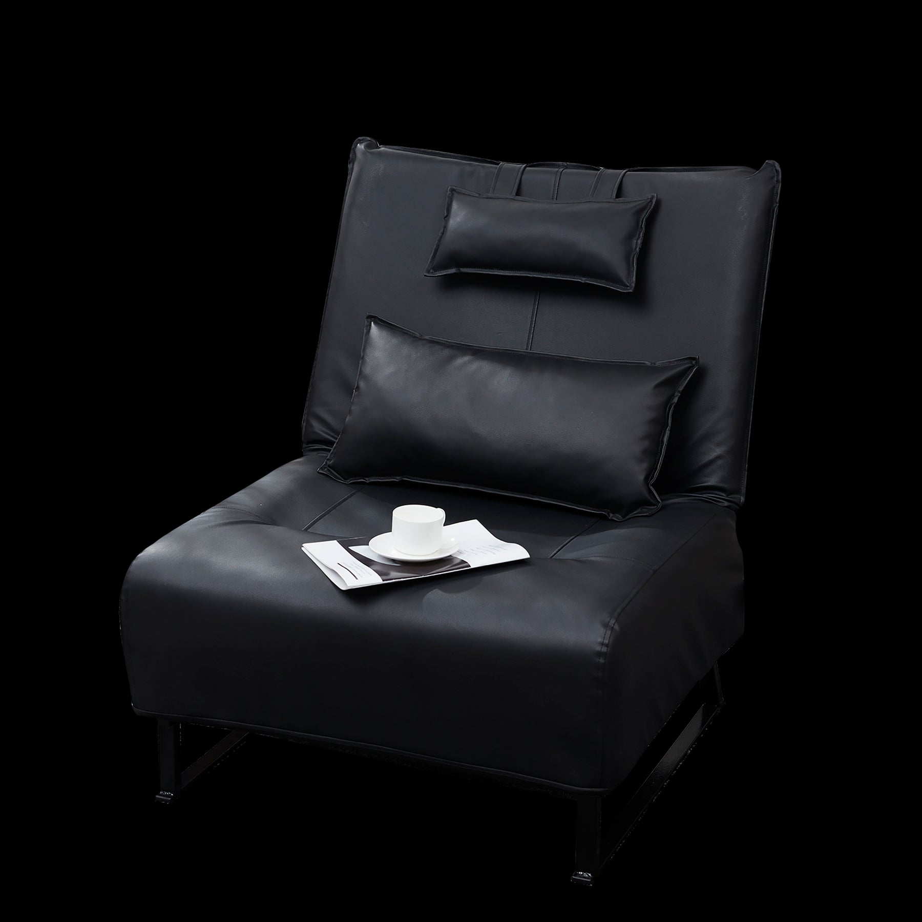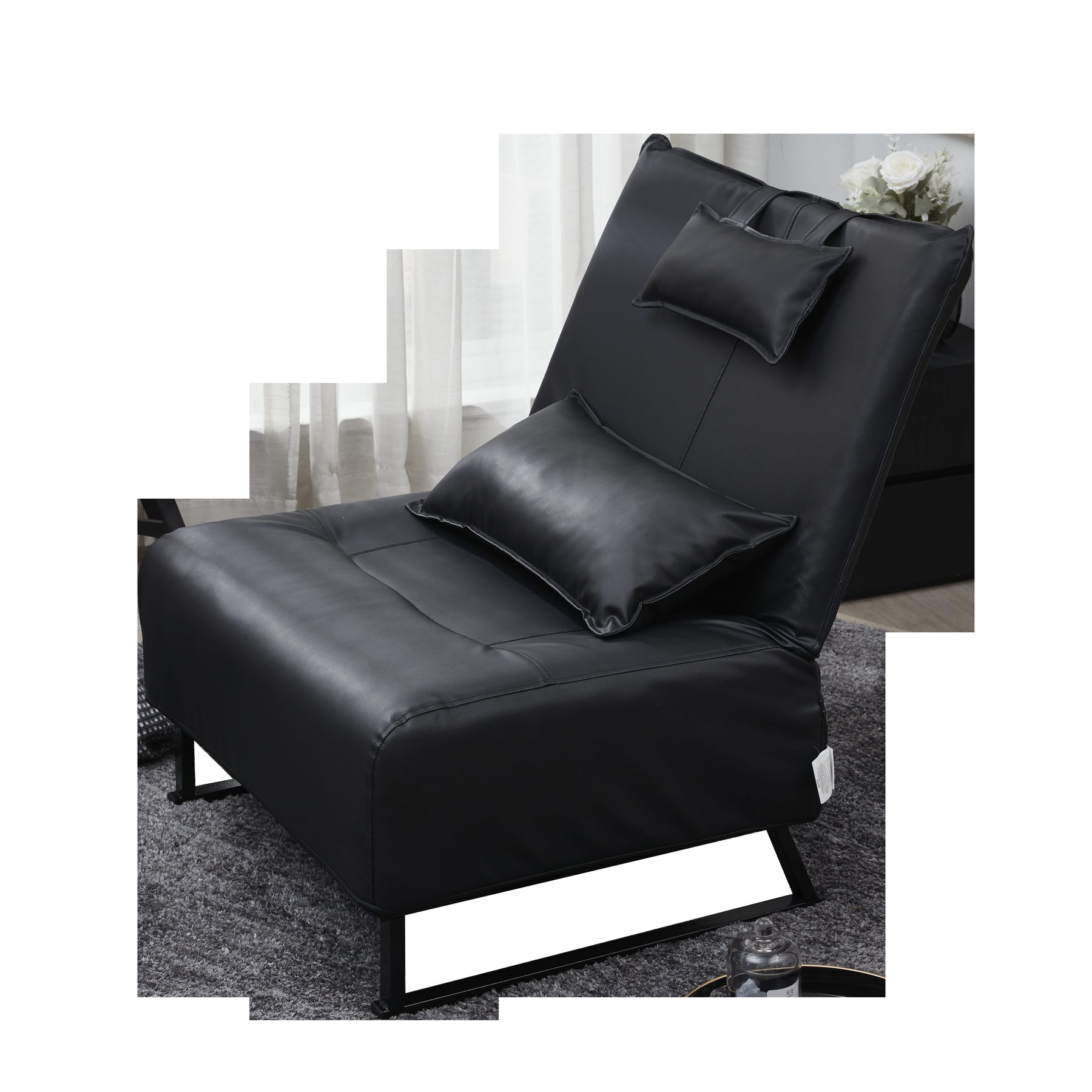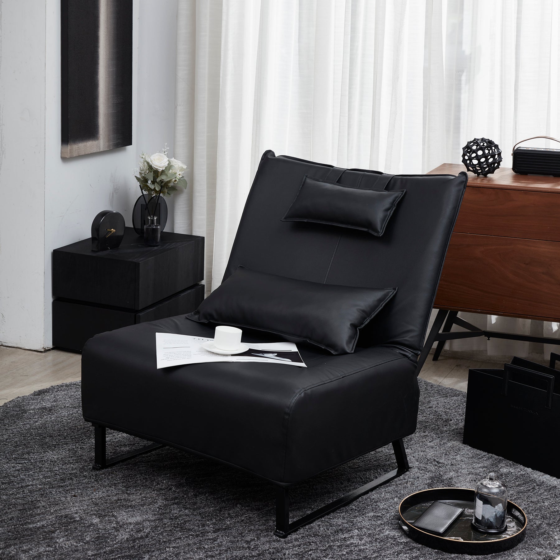 Feature: This recliner is urban chic and puts high-end design at your fingertips. Clean lines and skin-friendly soft fabrics create an inviting living space, whether at home or in the office. Product Description: This is a relaxing place to read and enjoy a glass of wine. After a long day at work, you come home to the cozy little home where you can lie down and relieve fatigue. The recliner back is ergonomically designed to help relieve fatigue pressure on your spine while you recline on this recliner sofa.  The overall frame is made of metal to ensure structural safety. It holds up to 300 lbs and provides strong support so you can sit with confidence. The seat cushion adopts a built-in high-elastic sponge, which is more comfortable and will not deform after long-term use. This recliner is suitable for the living room, bedroom, porch, office, balcony, and reception area, especially a small study room. The modern look helps to add a unique style to your house. Whether you're reading, napping, or just thinking, this is your favorite place to unwind. The leather art of this recliner can be effectively waterproof, so you don't have to worry about getting dirty. The set comes complete with all the accessories needed for assembly. It also comes with easy-to-understand instructions that you can follow. It only takes 10-15 minutes to set up and install. Product Specification: Color: Black Material: Metal Size: 31.49 x 26.37 x 37.40 inches Weight: 14kg Function: Home Furniture Package Inclusion: 1 x Accent Chair 1 x Assembly Kit