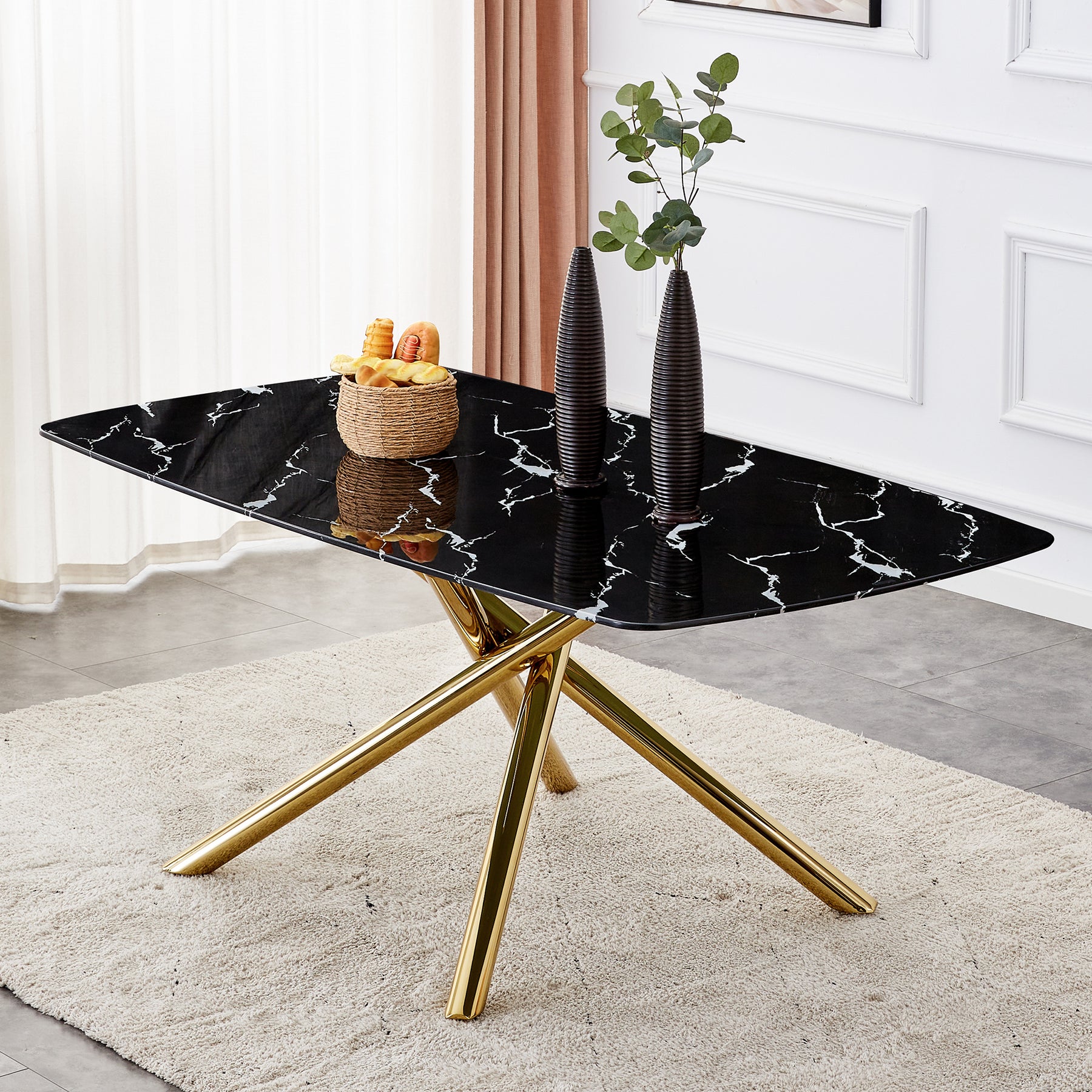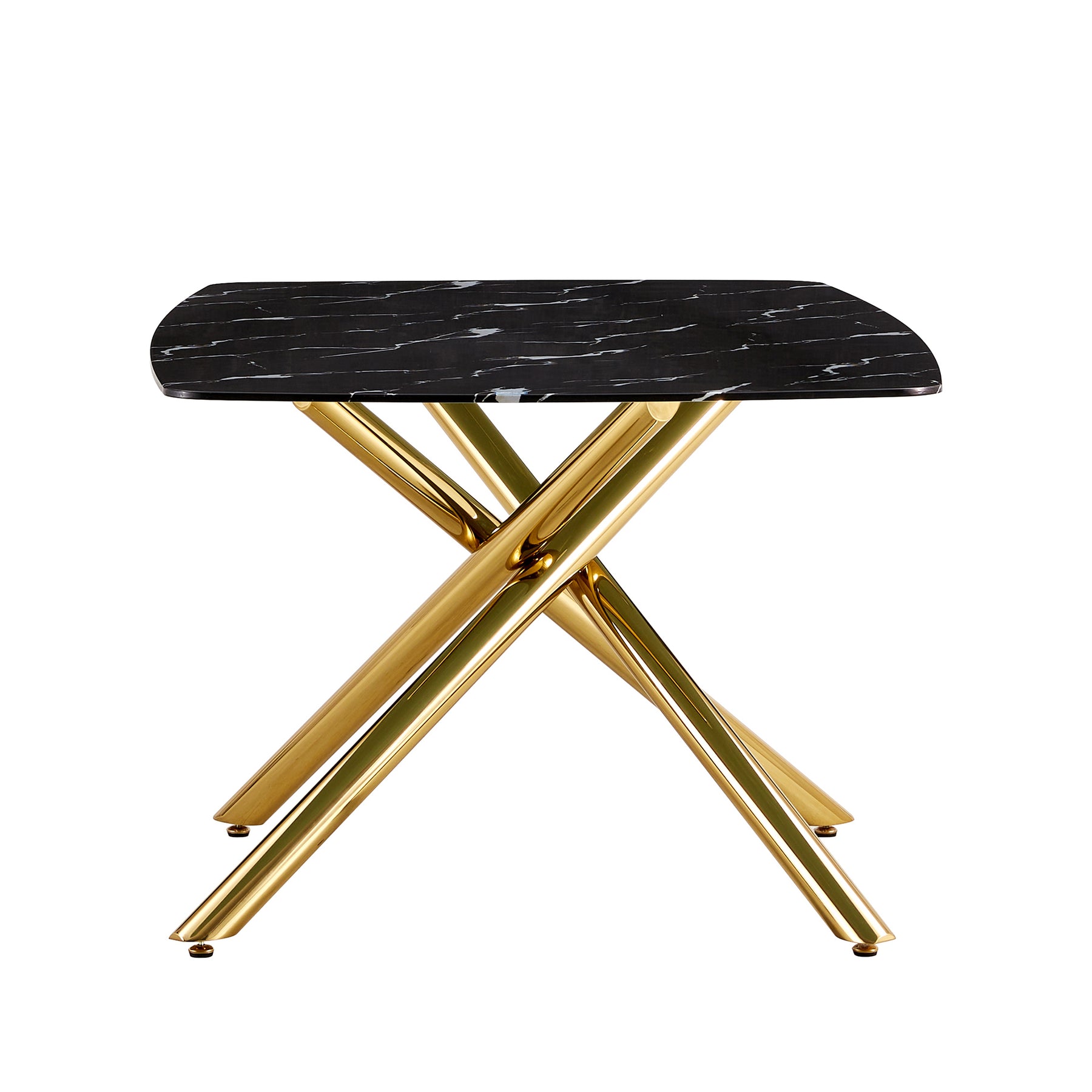 Large modern minimalist rectangular dining table with 0.39 "imitation marble black tabletop and golden metal legs, for Kitchen Dining Living Meeting Room Banquet hall 1537_6