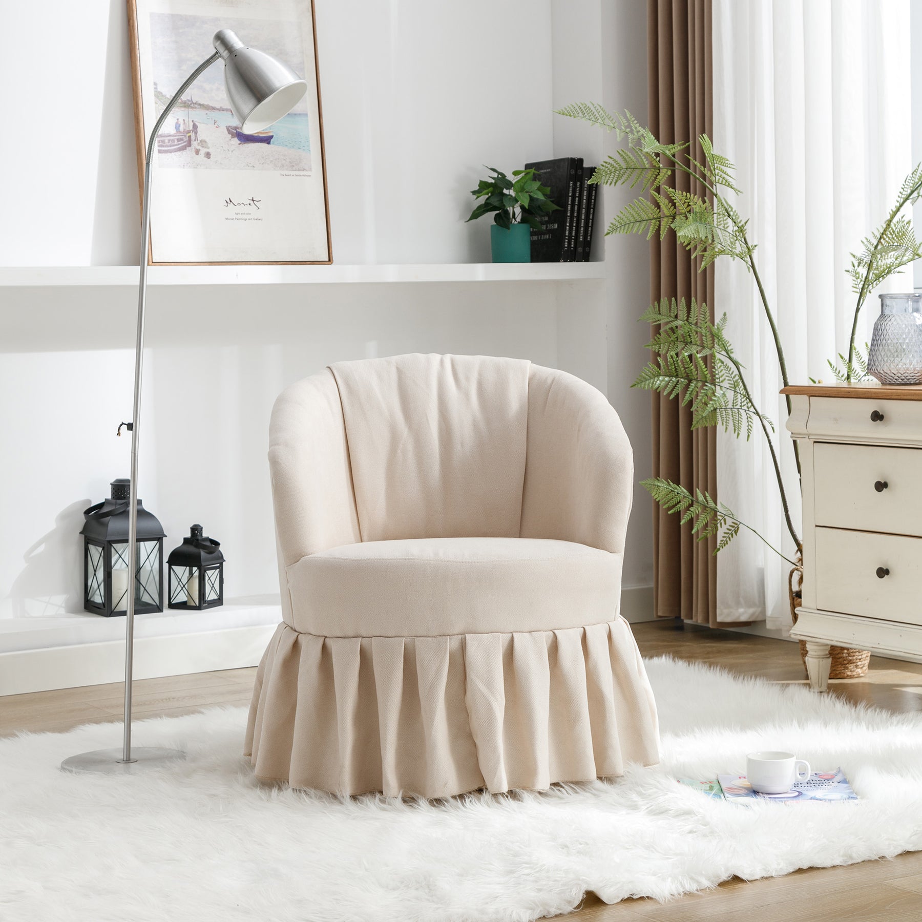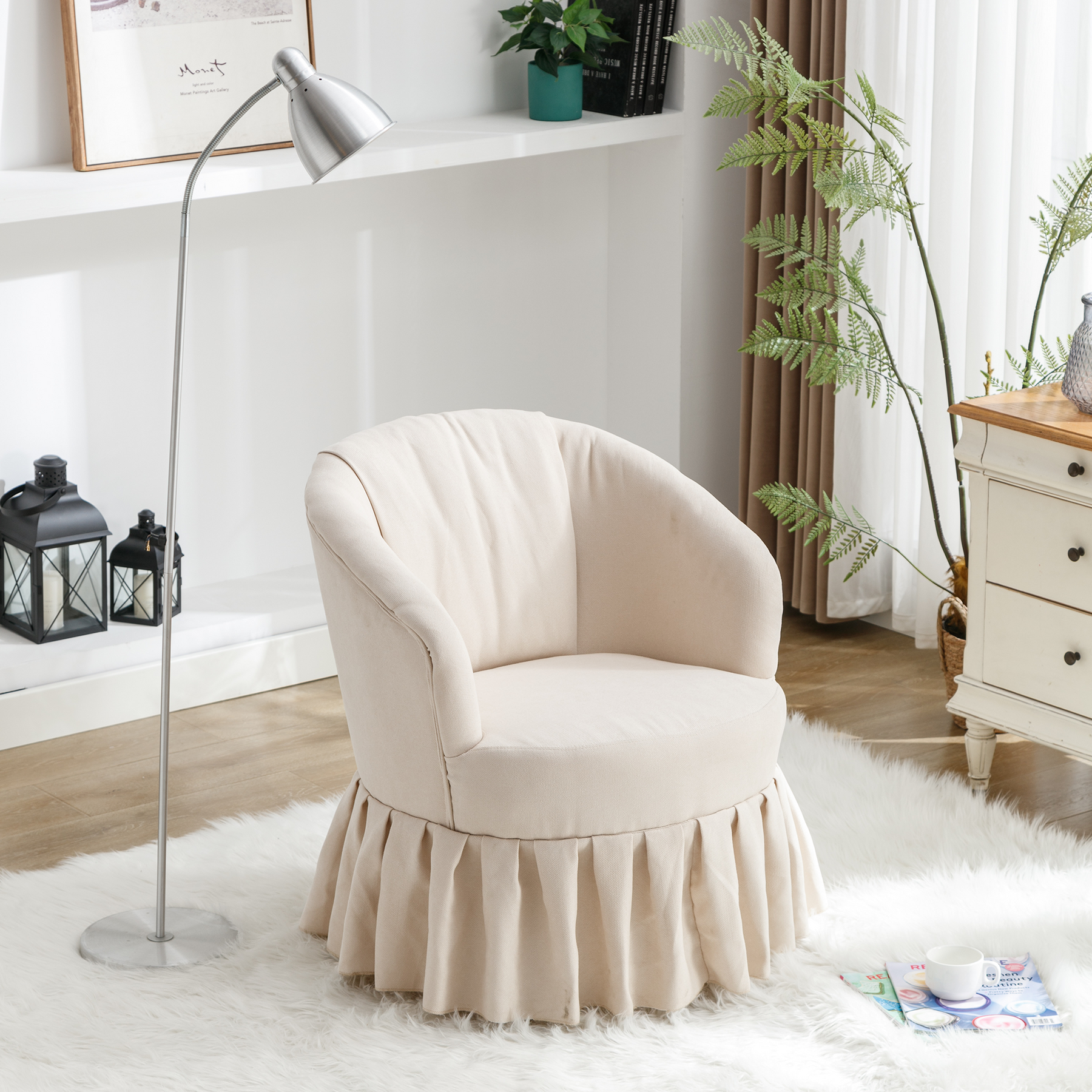 Linen Fabric Accent Swivel Chair Auditorium Chair With Pleated Skirt- Beige
