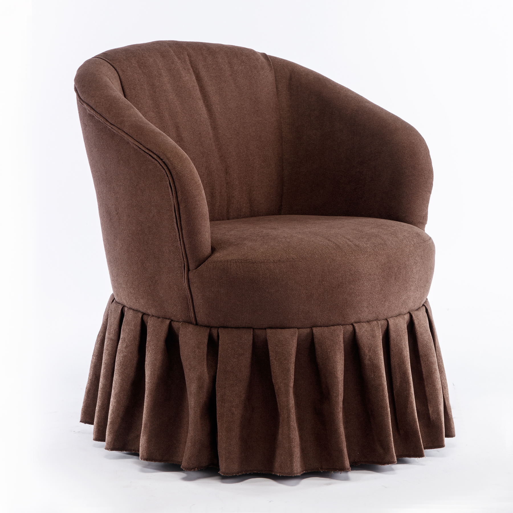 Linen Fabric Accent Swivel Chair Auditorium Chair With Pleated Skirt- Brown