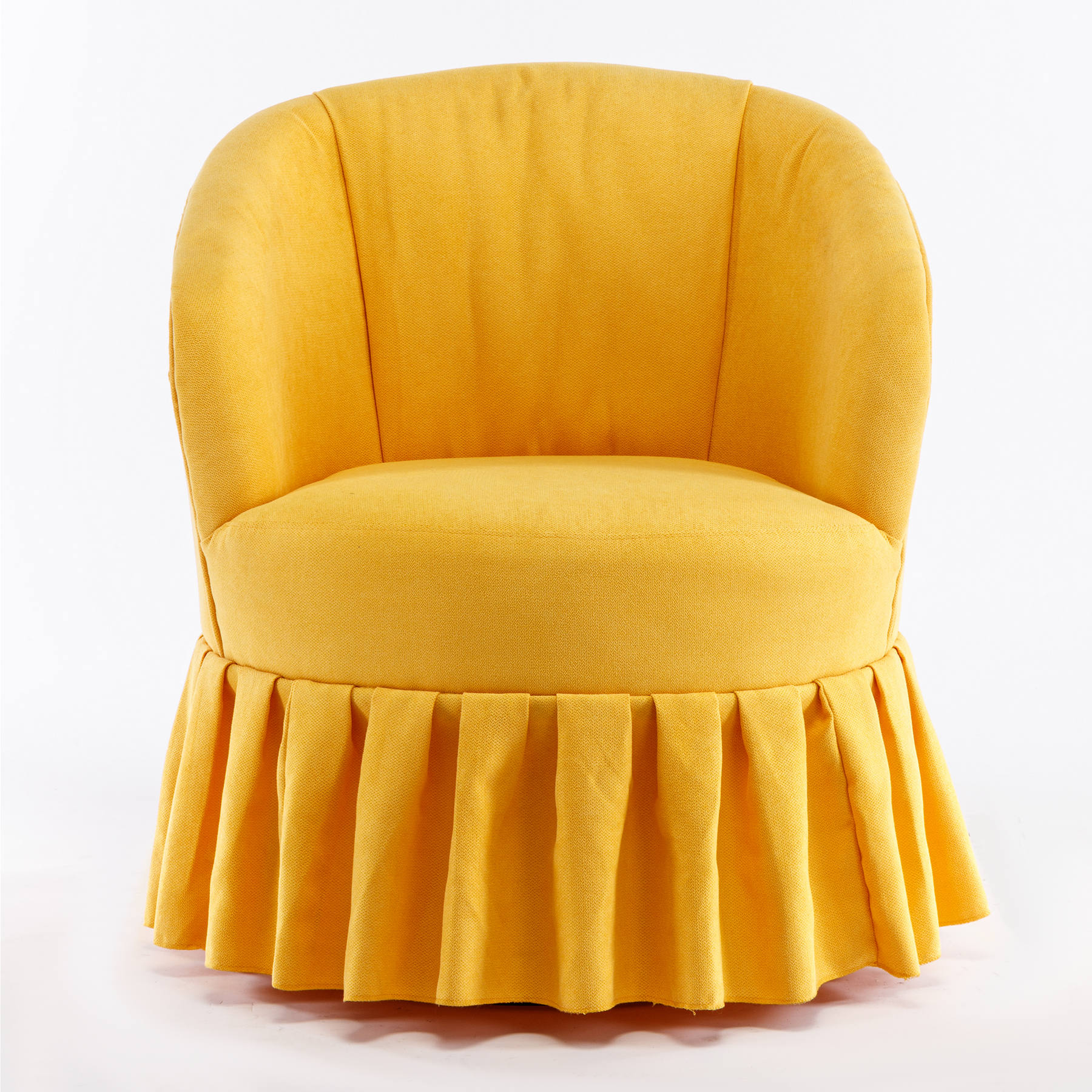 Linen Fabric Accent Swivel Chair Auditorium Chair With Pleated Skirt- Yellow_0