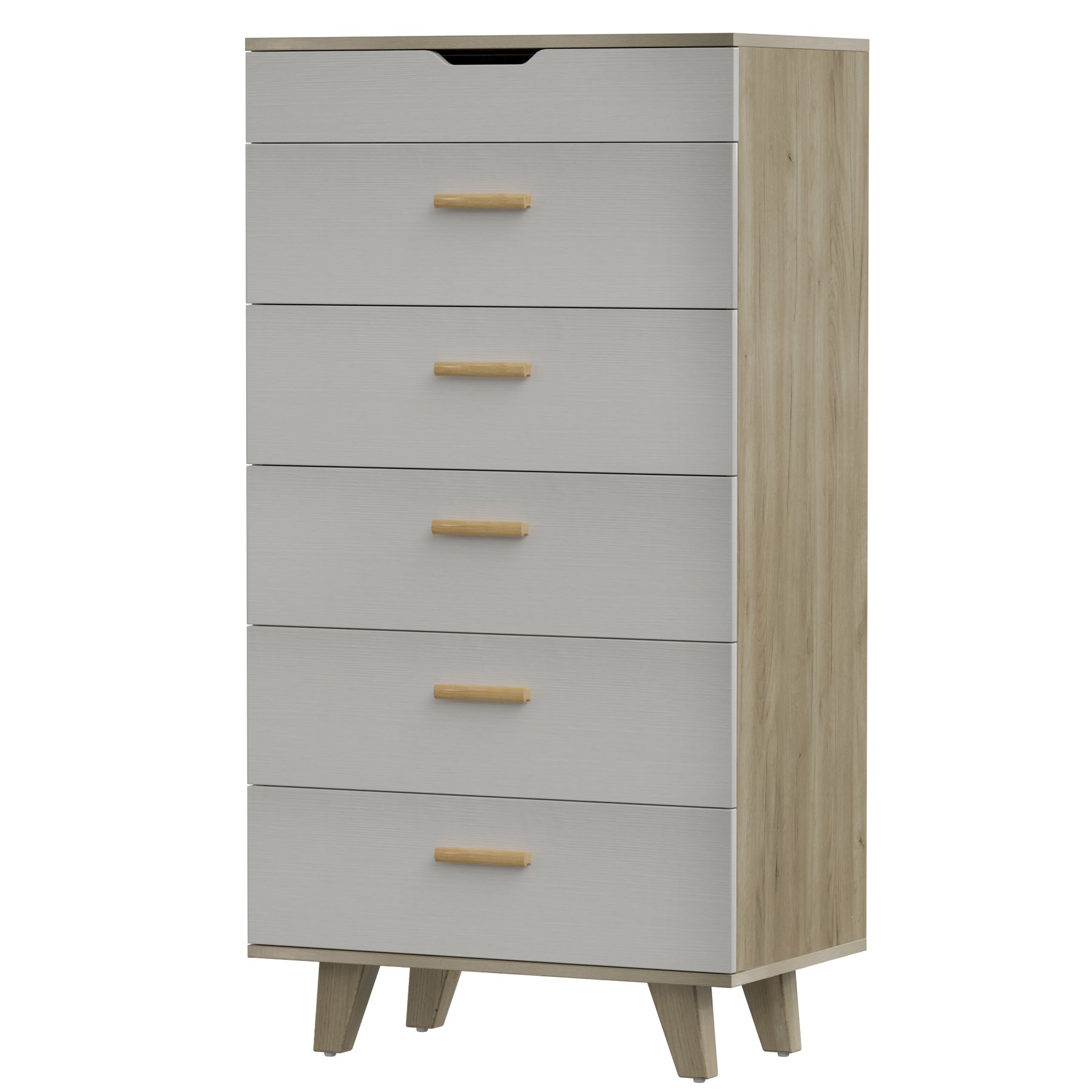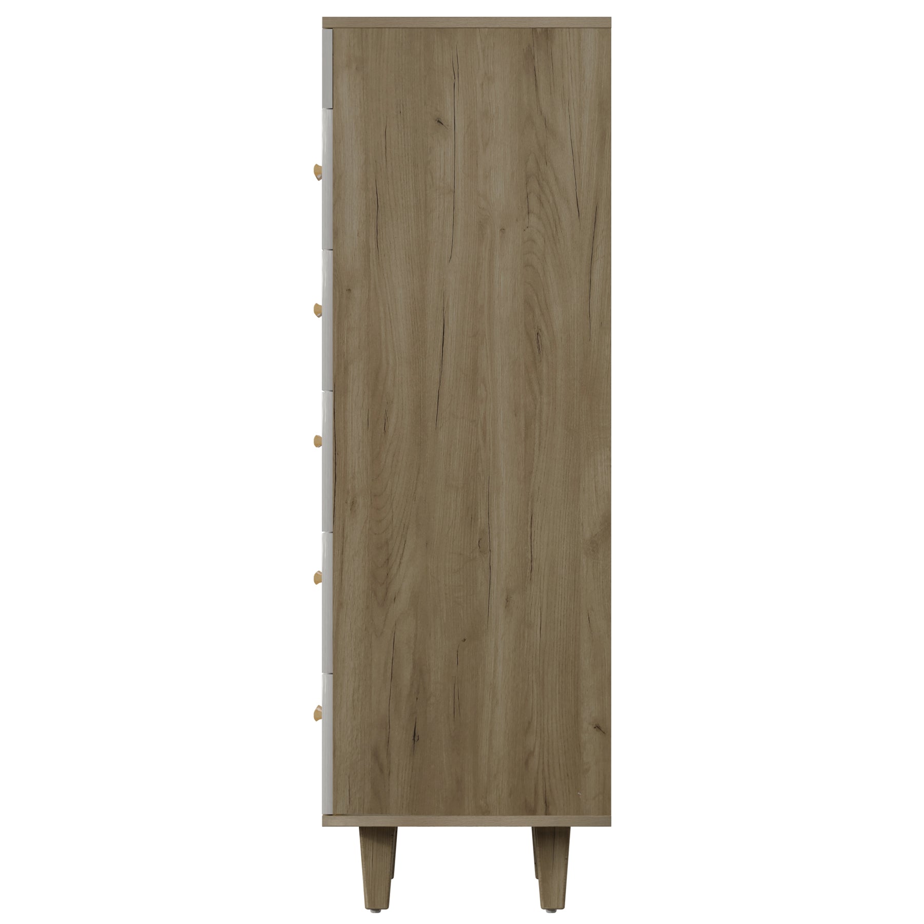 Feature: This stylish cabinet dresser with mirror adds a touch of modern and timeless design to your bedroom which gives an elegant and sophisticated vibe to your space. Product Description: The bottom of the table leg is equipped with a plastic foot, which can prevent the bottom plate from being scratched, and also can better protect the cabinet body.  With five spacious drawers, this wood-drawer dresser provides ample storage space for all your clothes, accessories, and other personal belongings. The drawers glide smoothly and silently, making it easy to access your items anytime. These dresser drawers are made of high-quality materials, ensuring durability and longevity. The solid wood construction and sturdy hardware ensure that it can withstand daily use and retain its pristine condition for years to come. This wood drawer dresser can be used in a variety of settings, from the bedroom to the living room to the cloakroom. It can serve as a dresser, chest of drawers, or nightstand, providing you with flexibility in terms of organizing your space. Product Specification: Color: White Oak Material: Particle Board Function: Home Furniture Package Inclusion: 1 x Solid Wood Dresser Cabinet with Makeup Mirror 1 x Assembly Kit