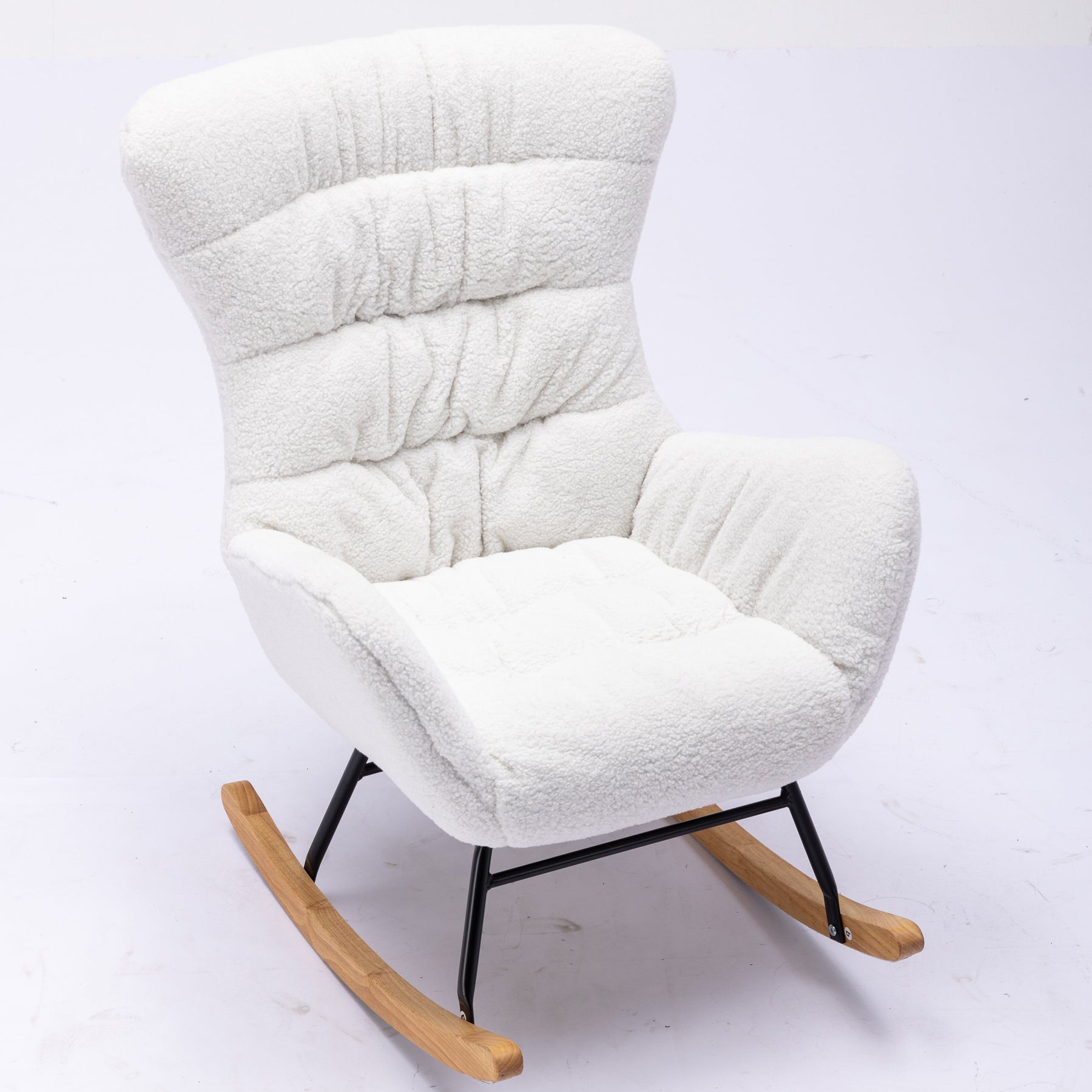 Modern Teddy Fabric Rocking Chair Accent Armchair with Wooden Legs- Ivory_0