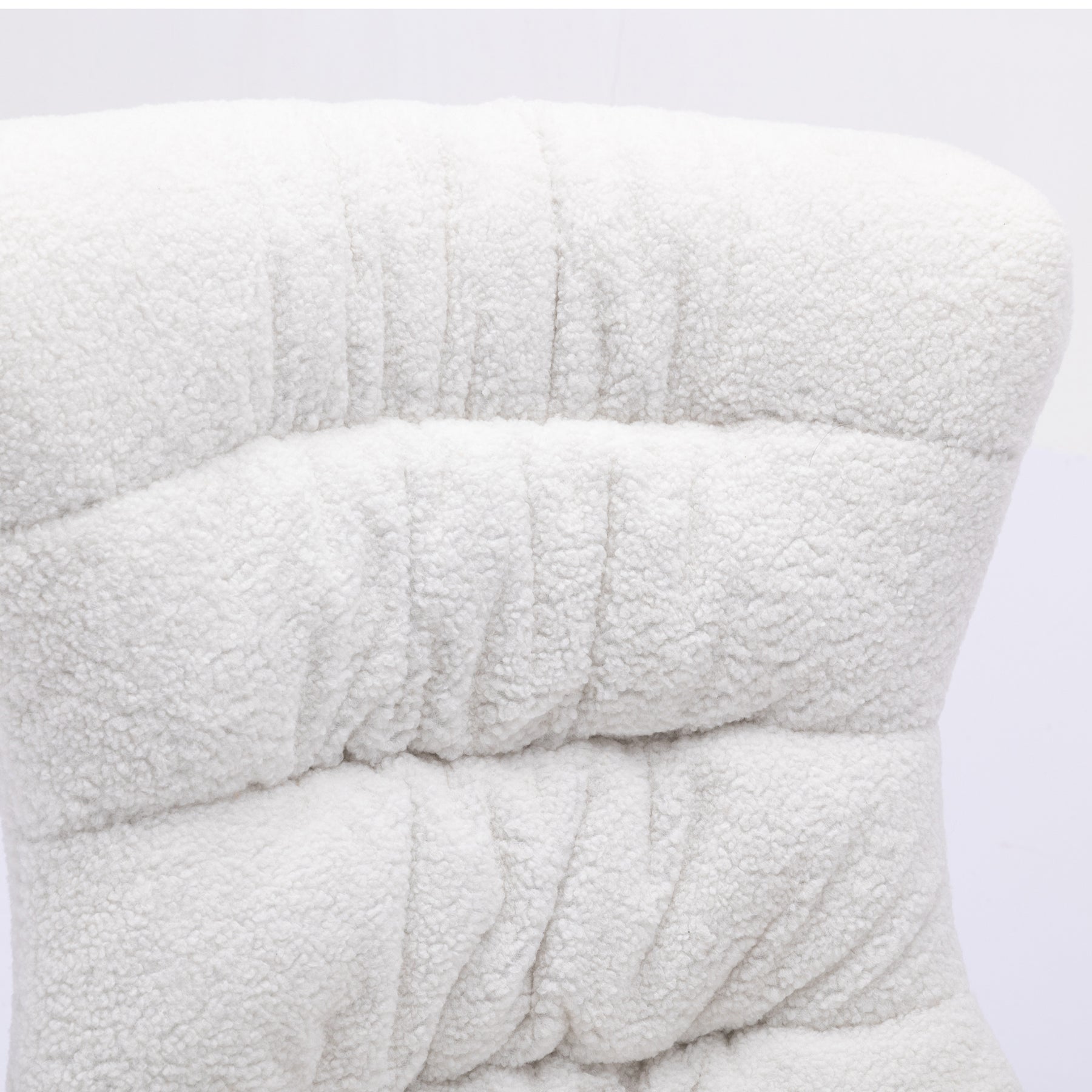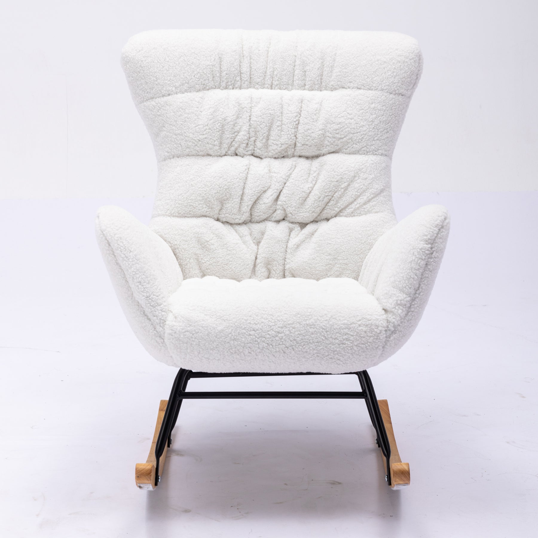 Modern Teddy Fabric Rocking Chair Accent Armchair with Wooden Legs- Ivory