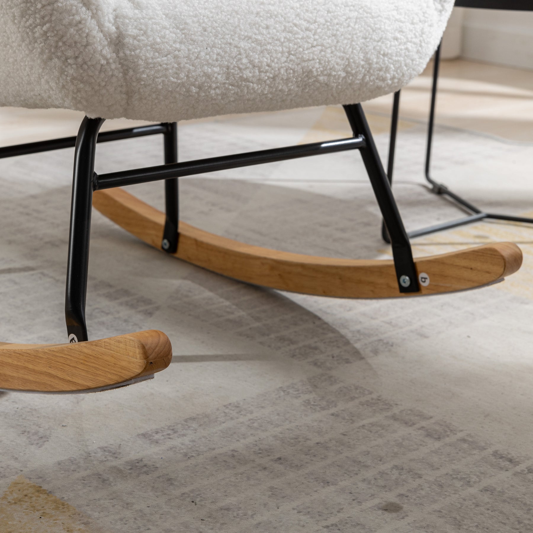 Modern Teddy Fabric Rocking Chair Accent Armchair with Wooden Legs- Ivory_13