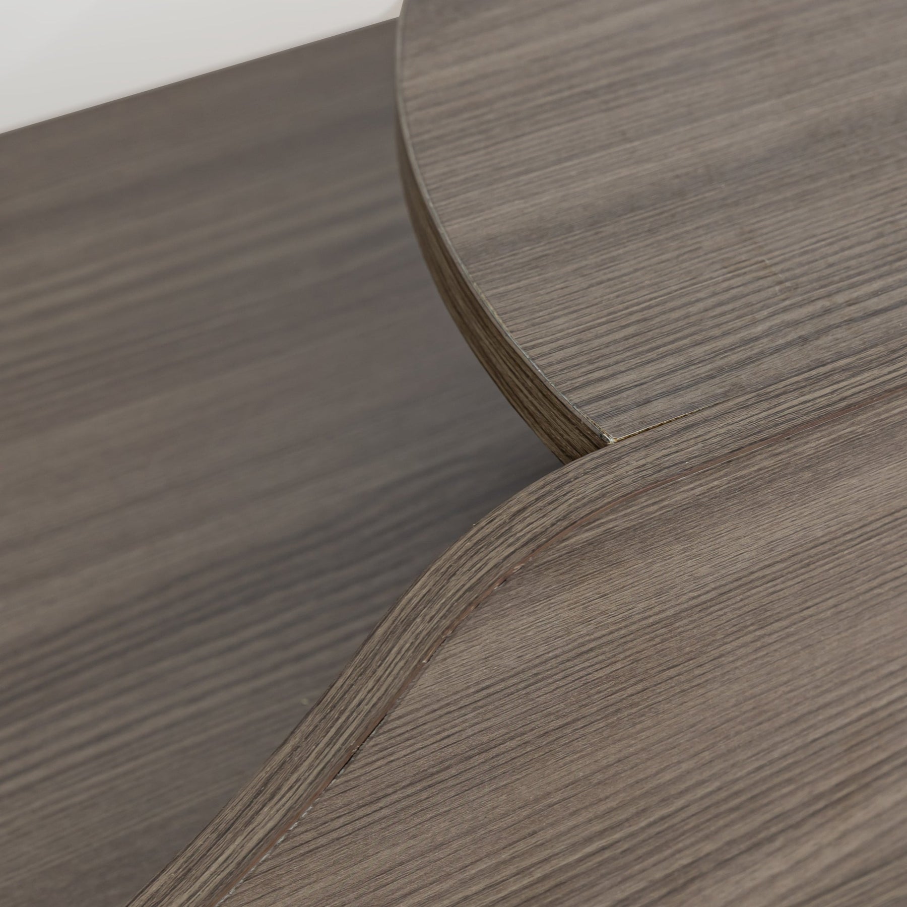 A Modern TV Stand for 70 Inch TV High Gloss Entertainment Center- Beige+Brown with a horizontal grain pattern and two built-in storage drawers underneath, embodying a modern minimalist design.