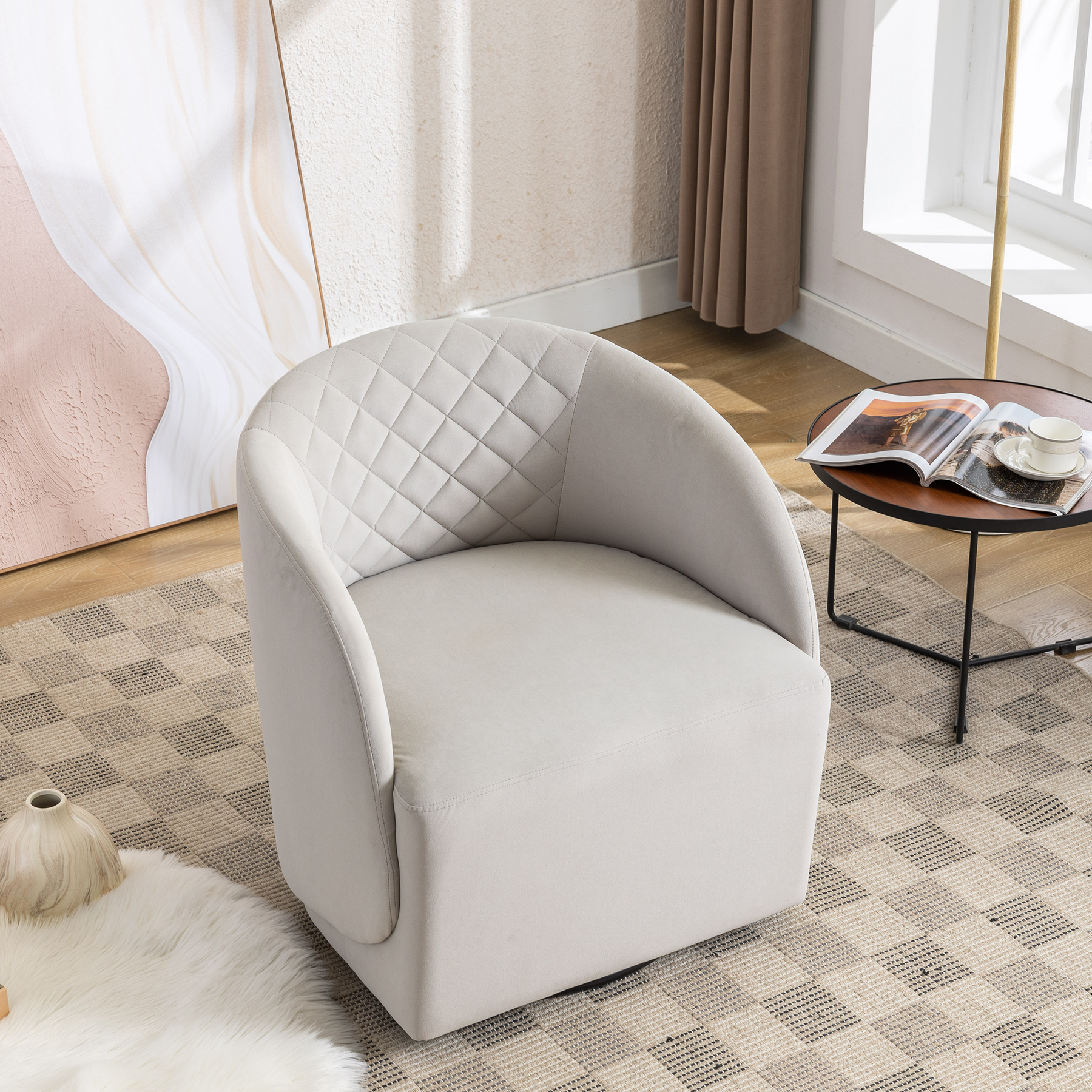 Modern Upholstered Velvet Fabric Curved Back Swivel Chair Accent Barrel Chair- Gray