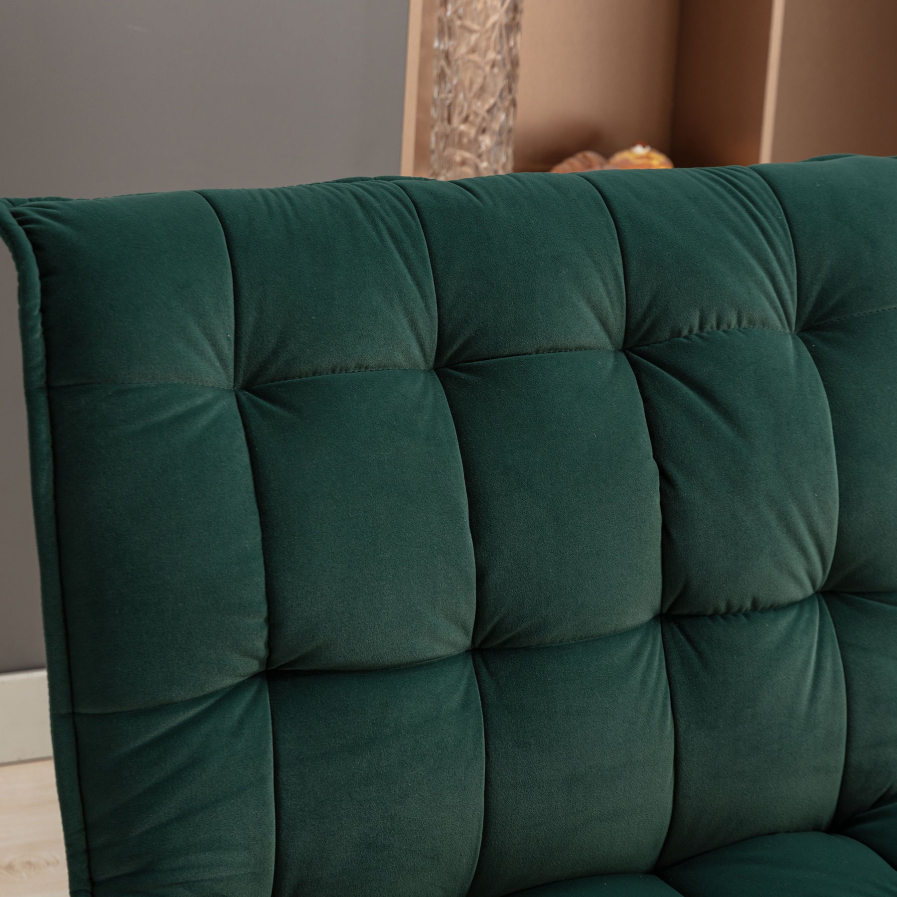 Modern Velvet Fabric Ottoman Lounge Chair with Metal Legs & Footrest Set- Dark Green_16