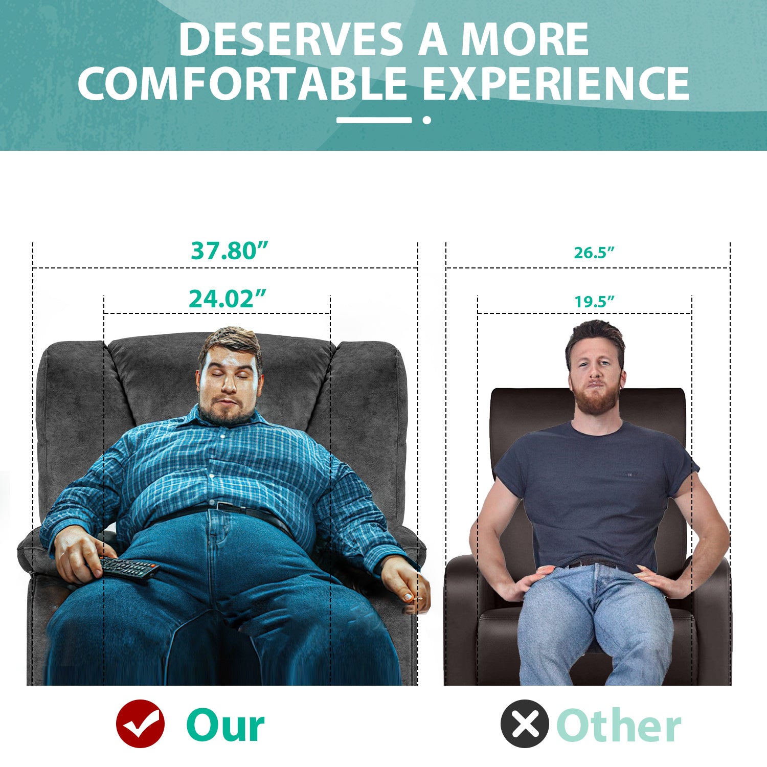 Distinct from common manual recliners, this one comes with 8 vibration points and 1 heating point at lumbar, which makes it perfect for massging different parts of the user's body and helping drive away physical tiredness