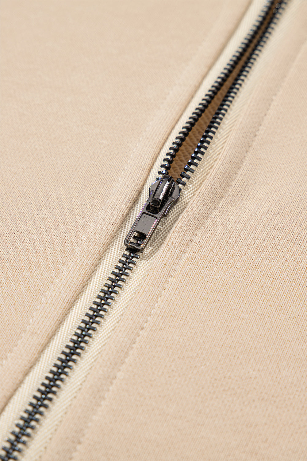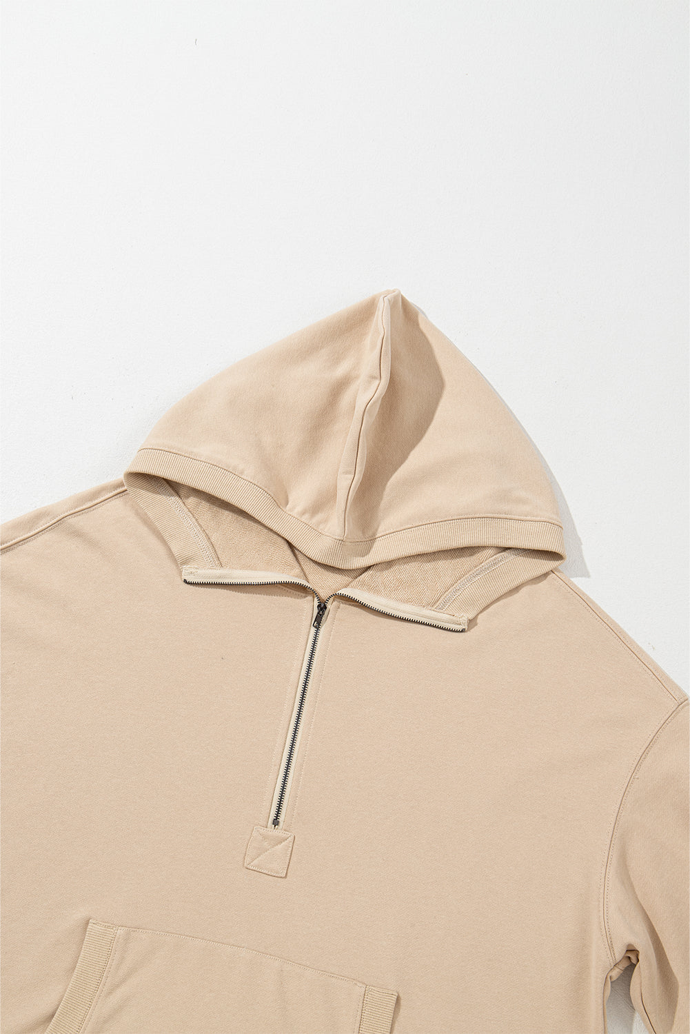 Parchment Solid Kangaroo Pocket Half Zipper Oversized Hoodie