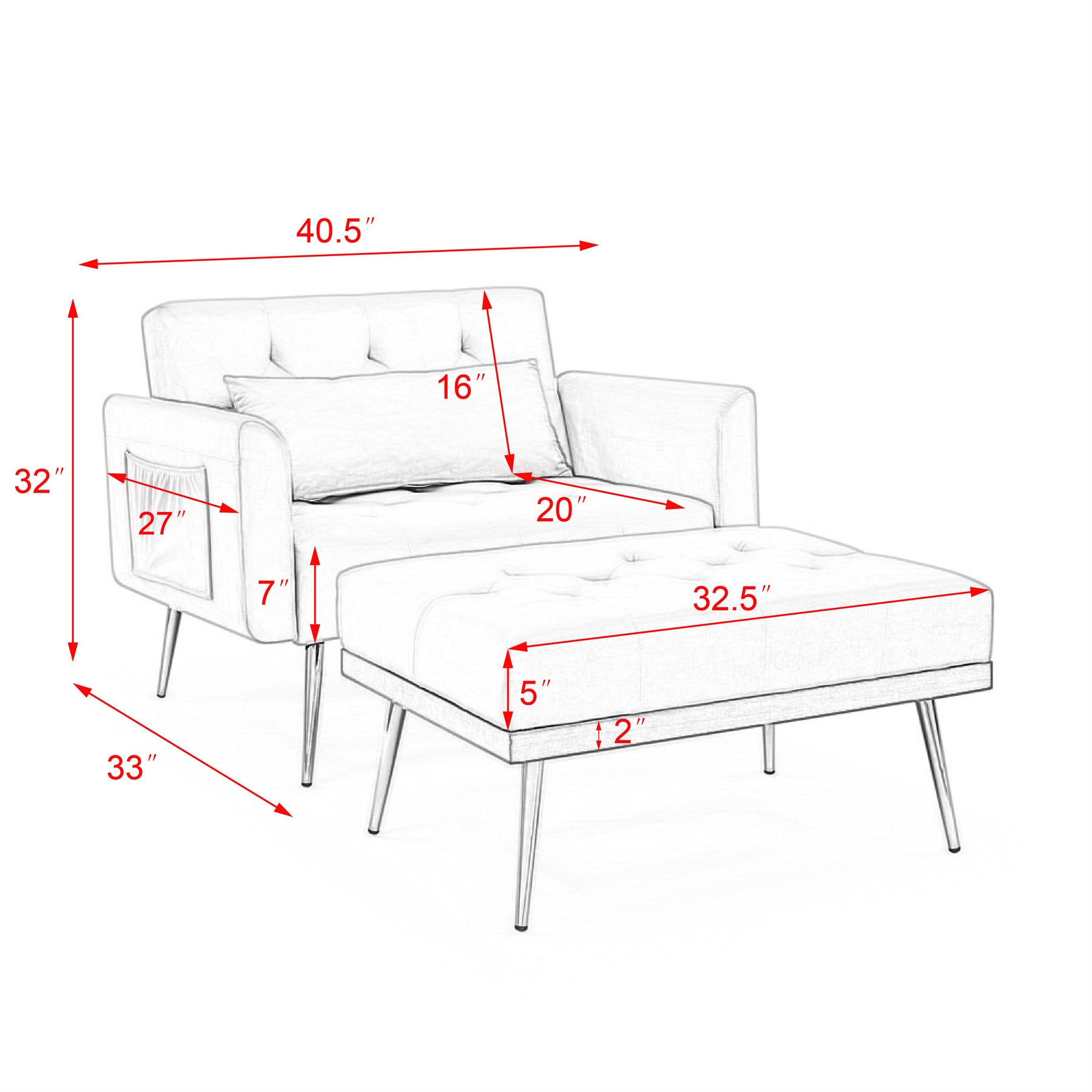 With an ottoman, this chair can be quickly converted into a guest/child bed to take a rest. Convenient for visiting family and friends.