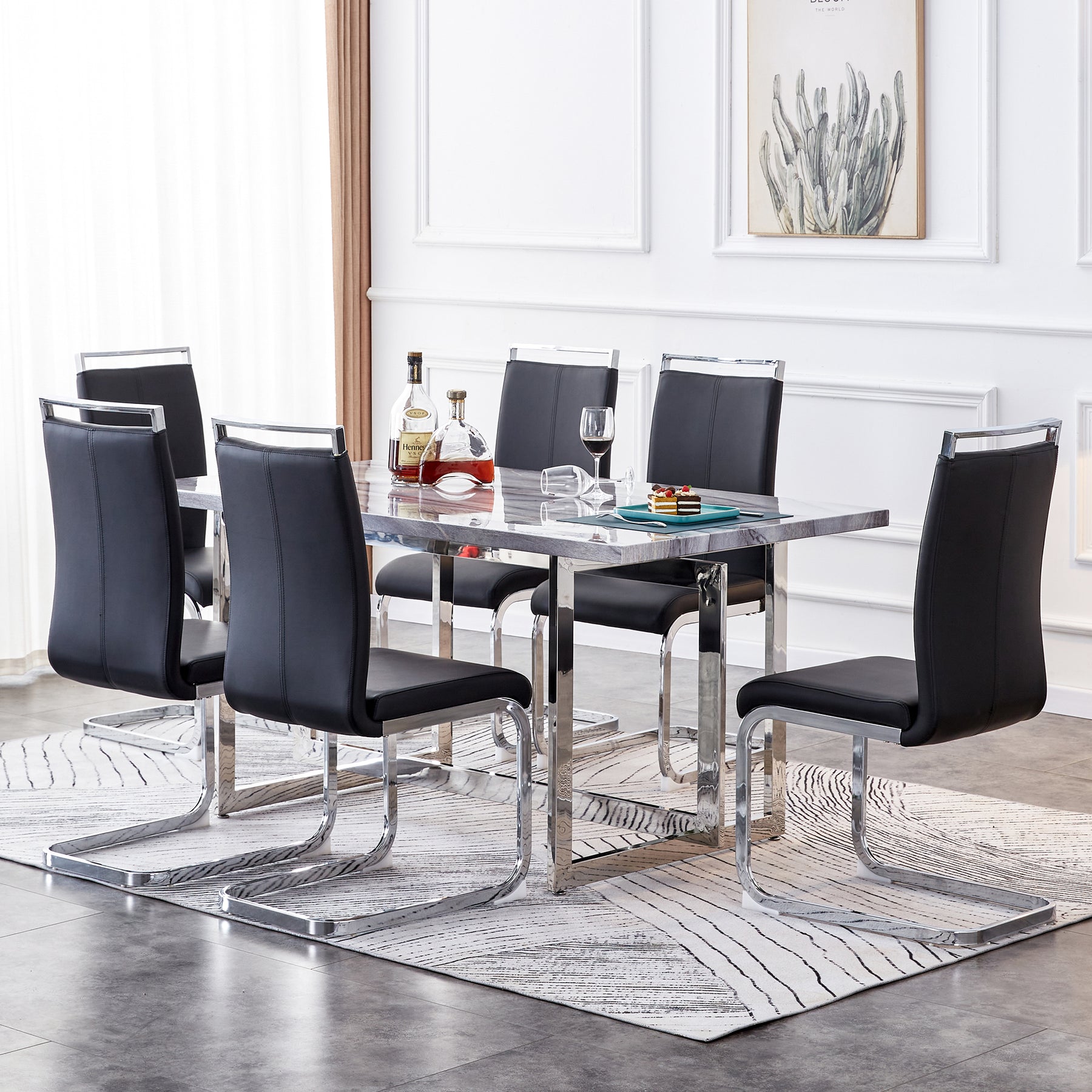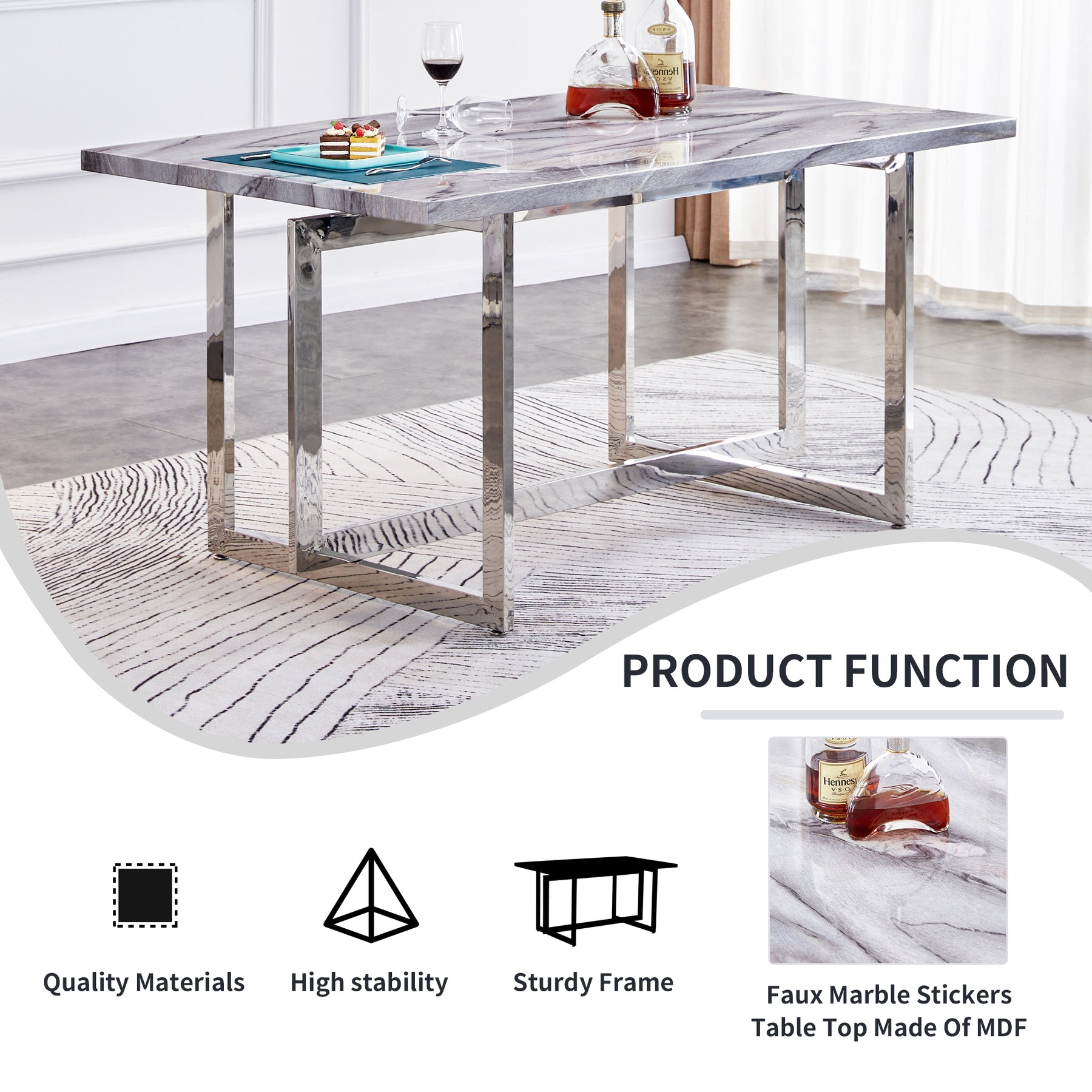 The combination of faux marble top and U-shaped pedestal enhances the visual attractiveness of this marble dining table, making it simplistic but elegant, which is perfect for bringing an air of luxurious style to your kitchen or dining room.