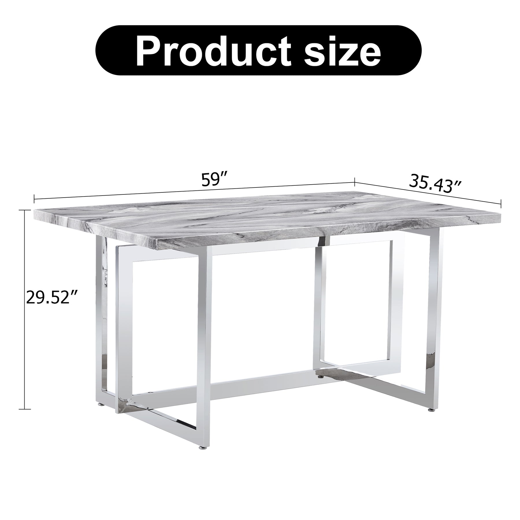 Rectangular Marble Dining Table with Faux Marble Top and Gray U-Shape Base_21