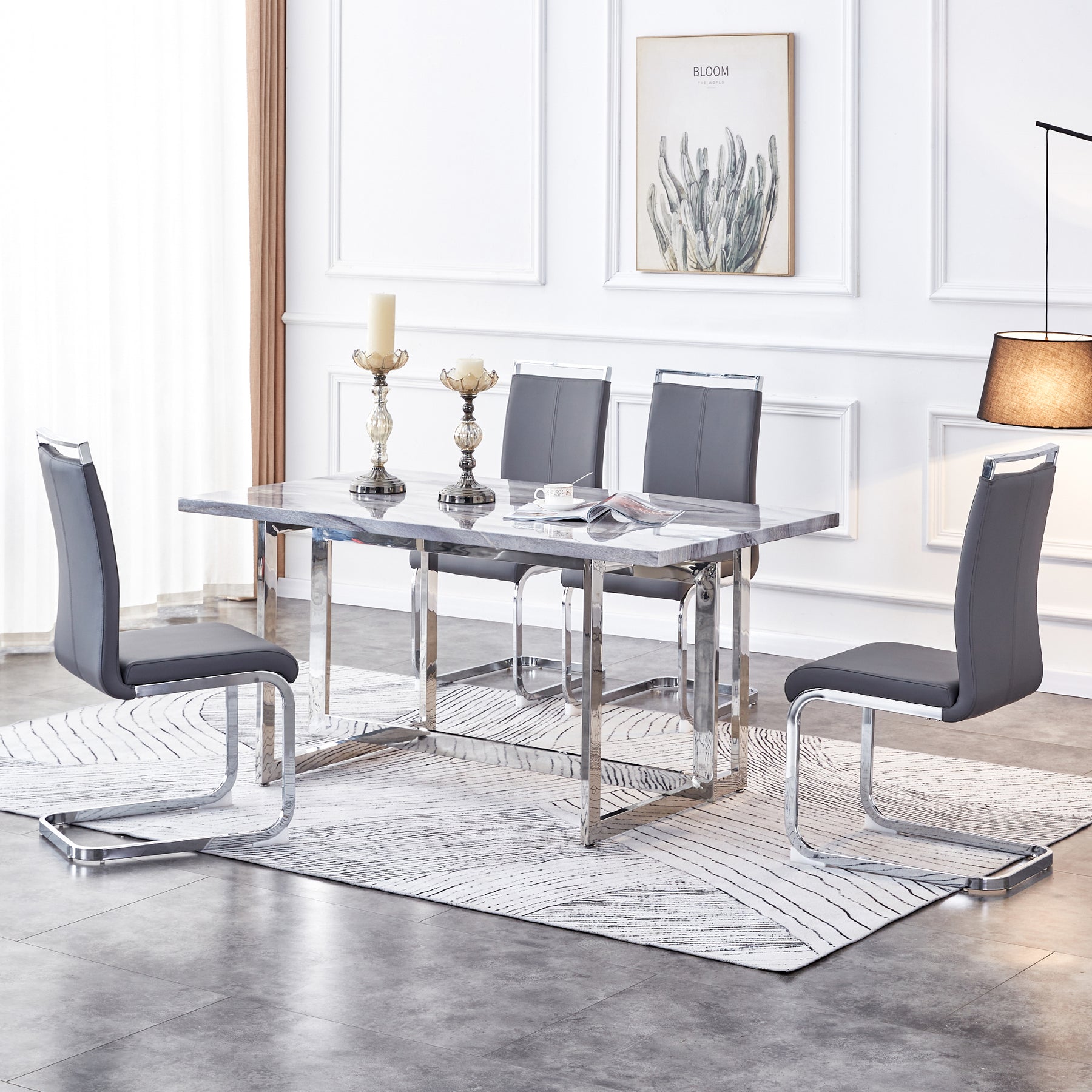 Rectangular Marble Dining Table with Faux Marble Top and Gray U-Shape Base_23