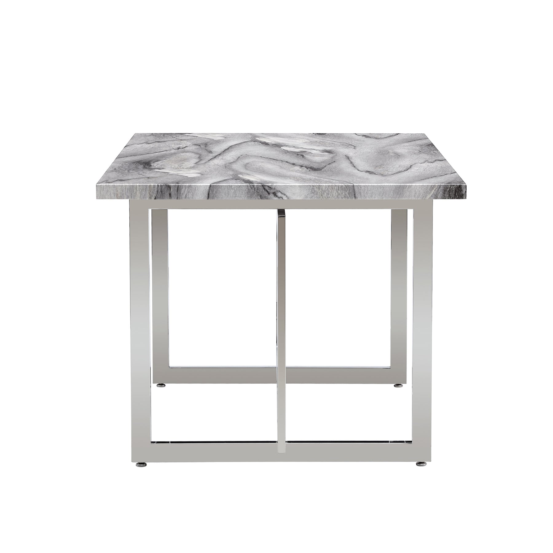 Rectangular Marble Dining Table with Faux Marble Top and Gray U-Shape Base_2