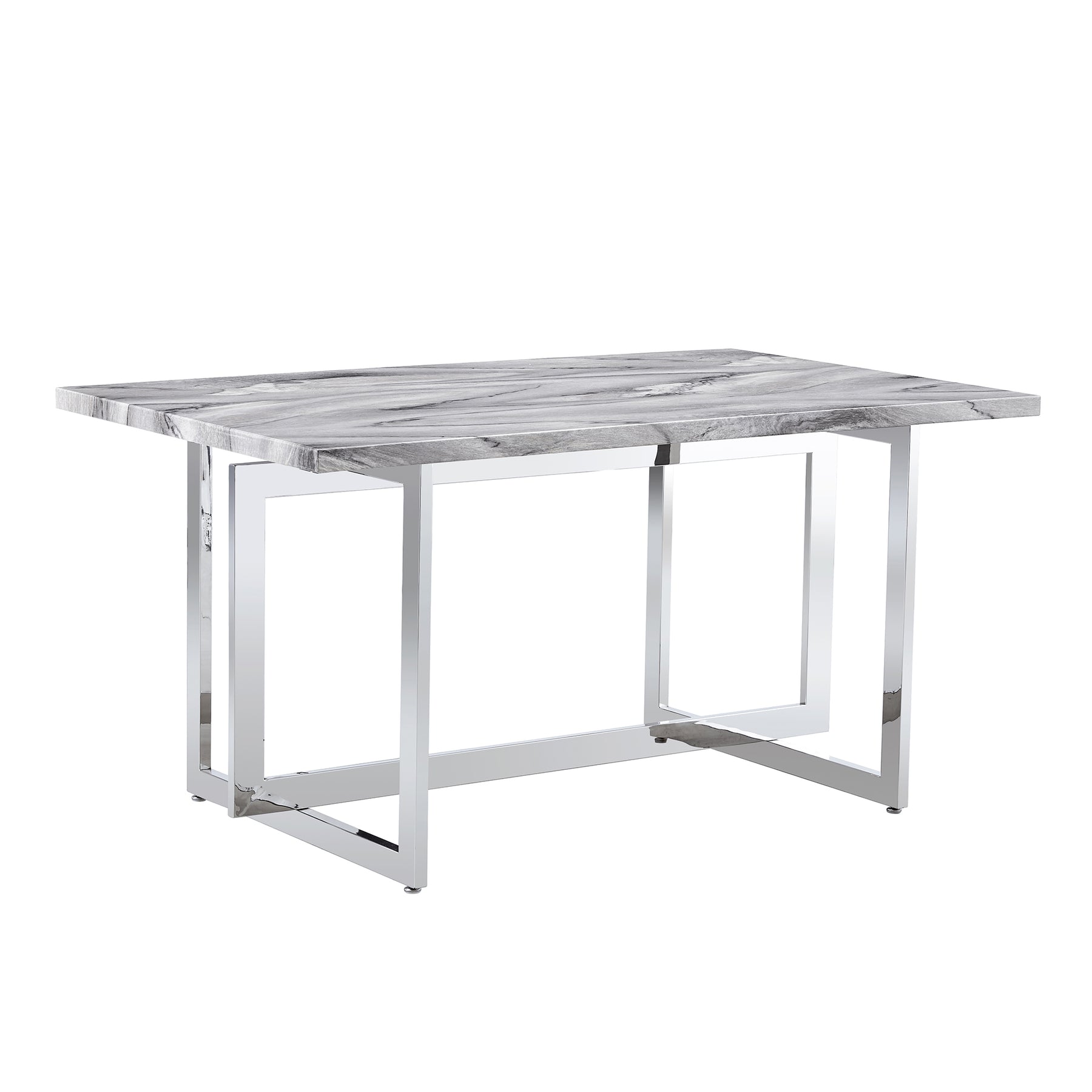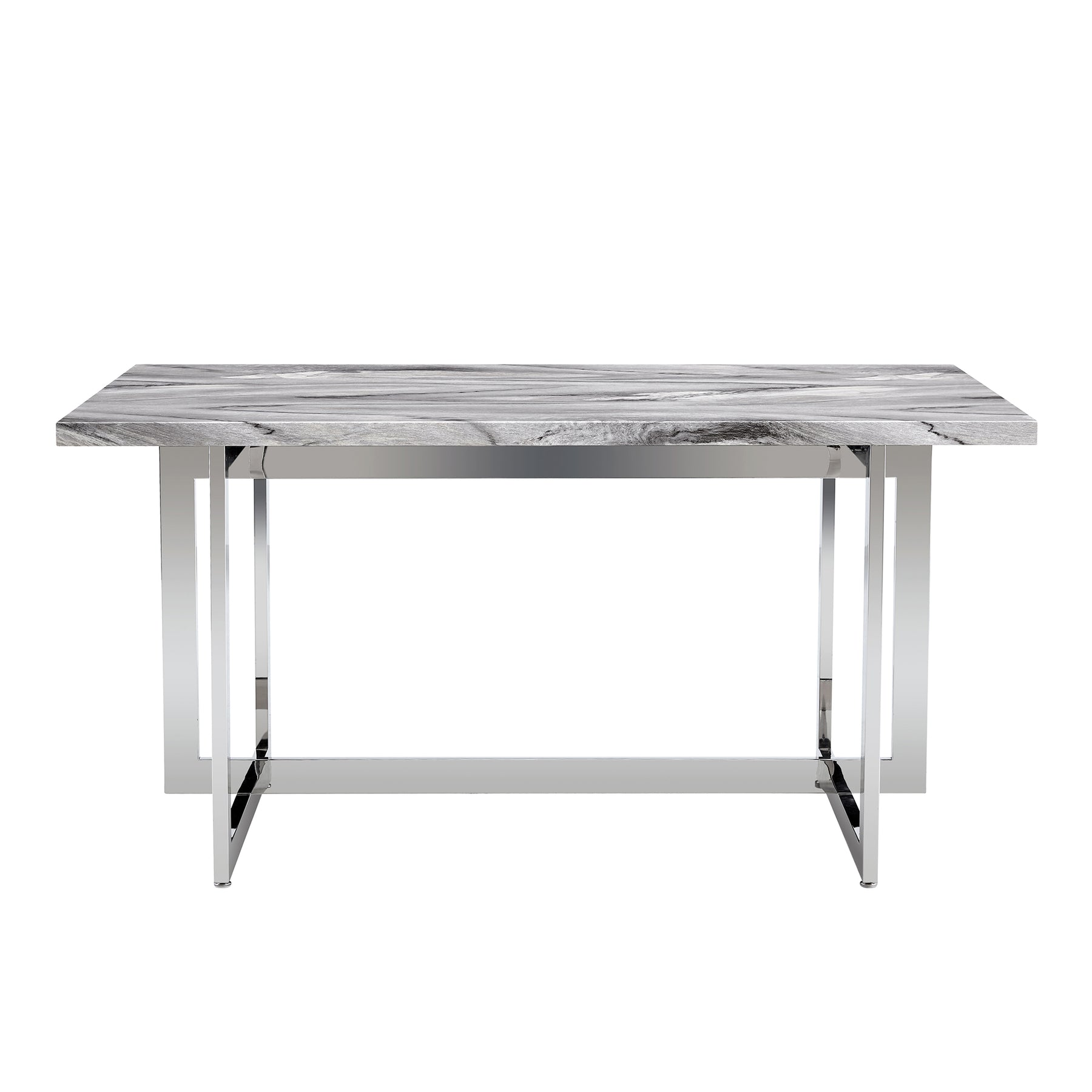 Rectangular Marble Dining Table with Faux Marble Top and Gray U-Shape Base_1