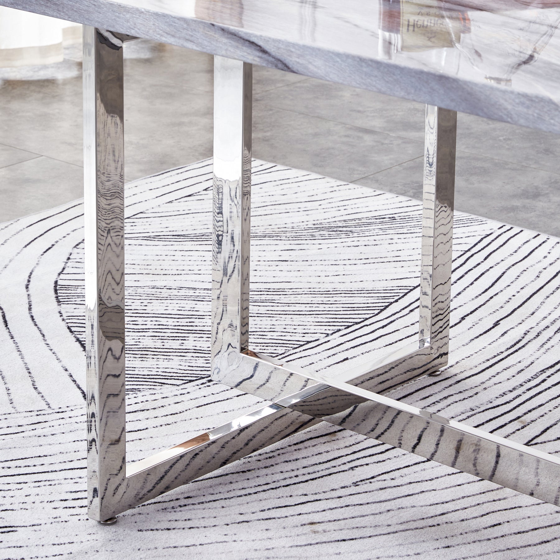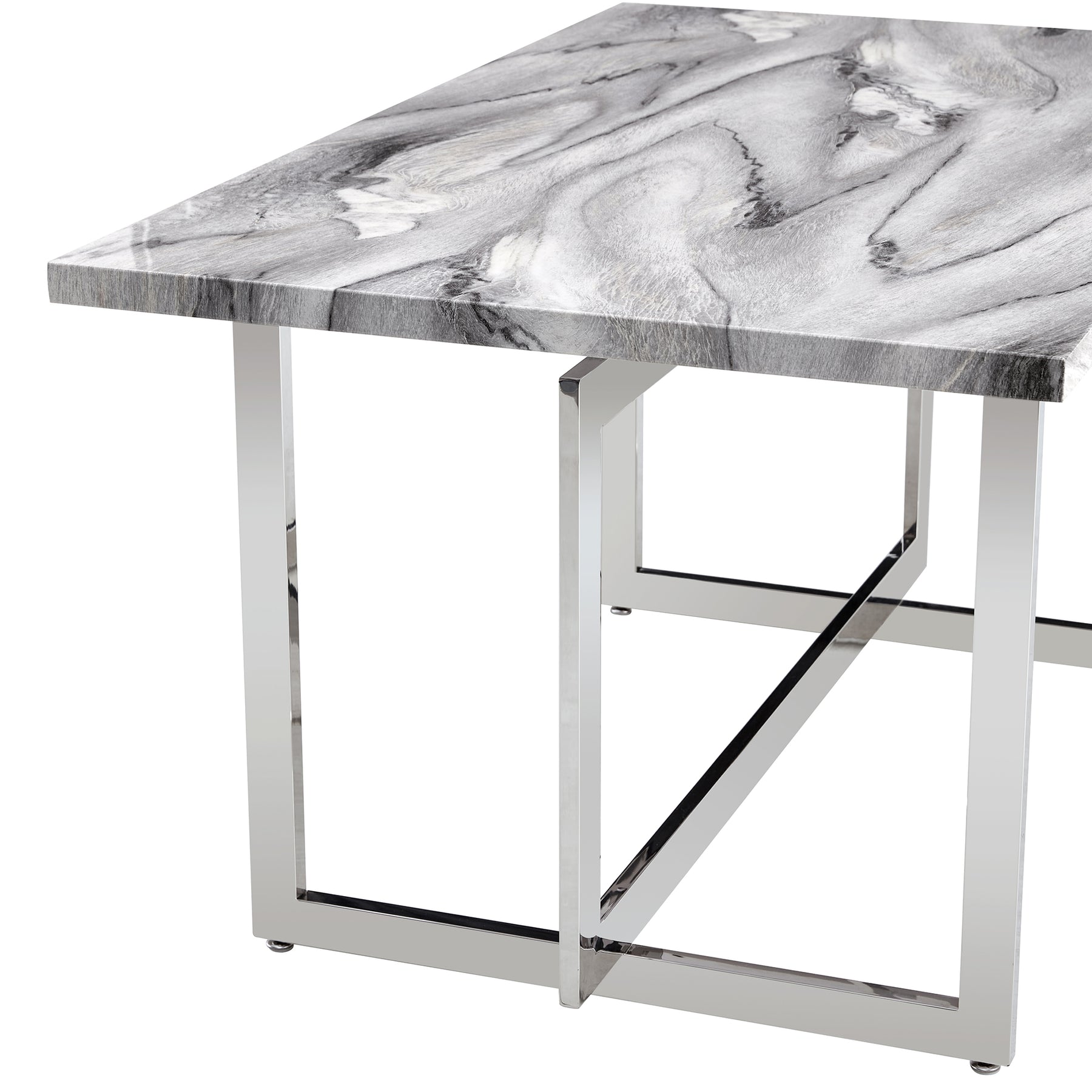 Rectangular Marble Dining Table with Faux Marble Top and Gray U-Shape Base_9