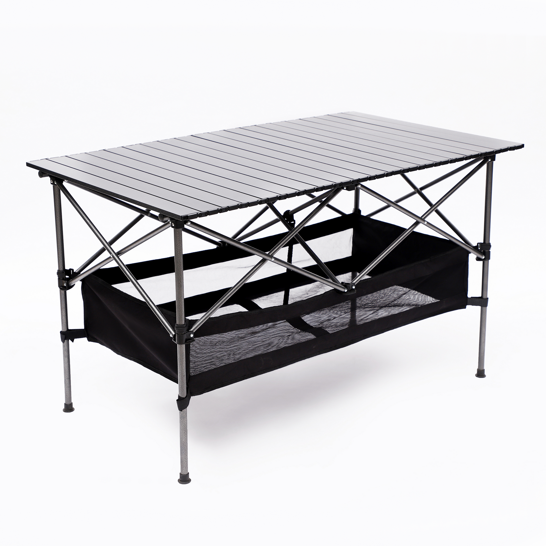 Set of 3 Outdoor Roll up Table and Folding Chair Set Portable Camping Set- Black_0