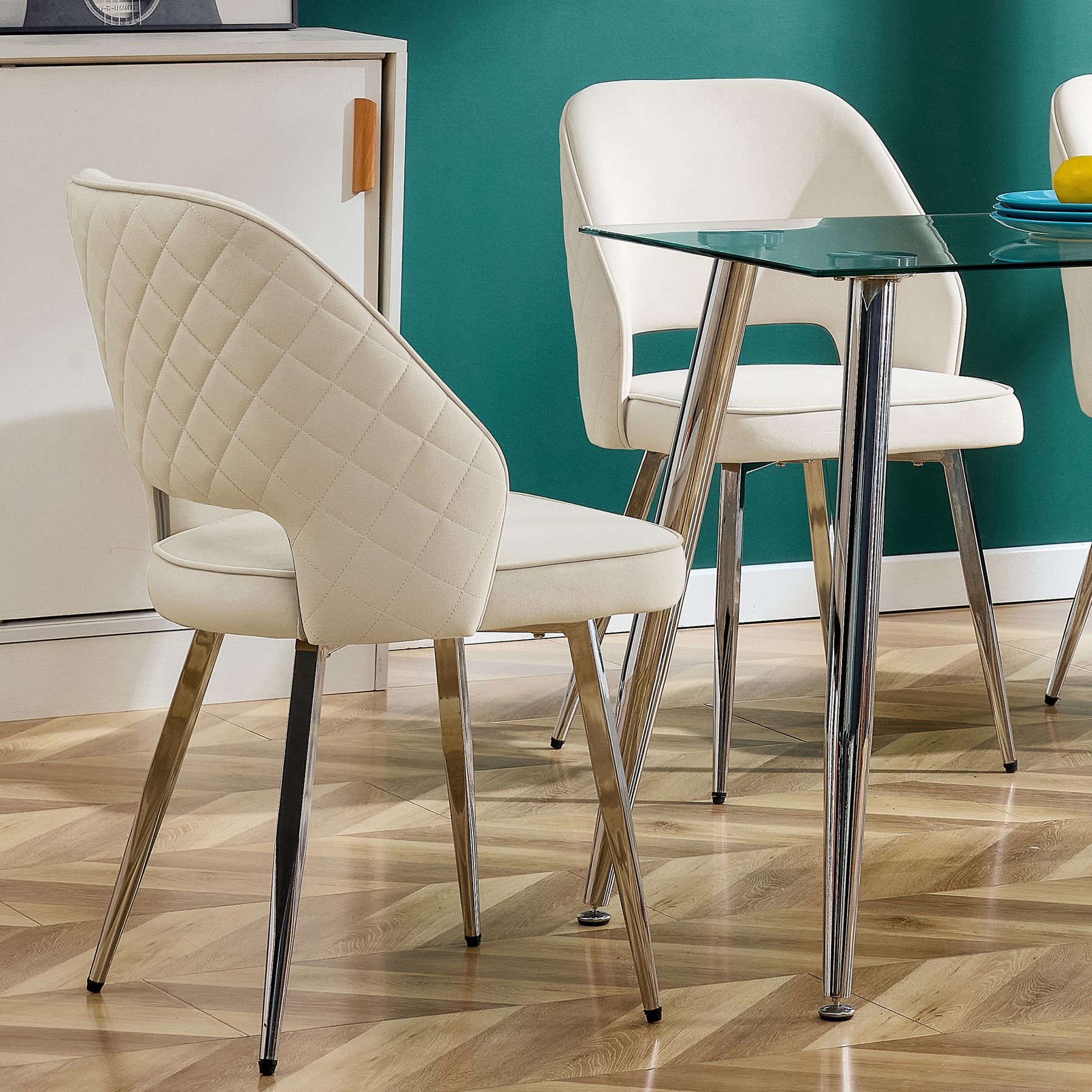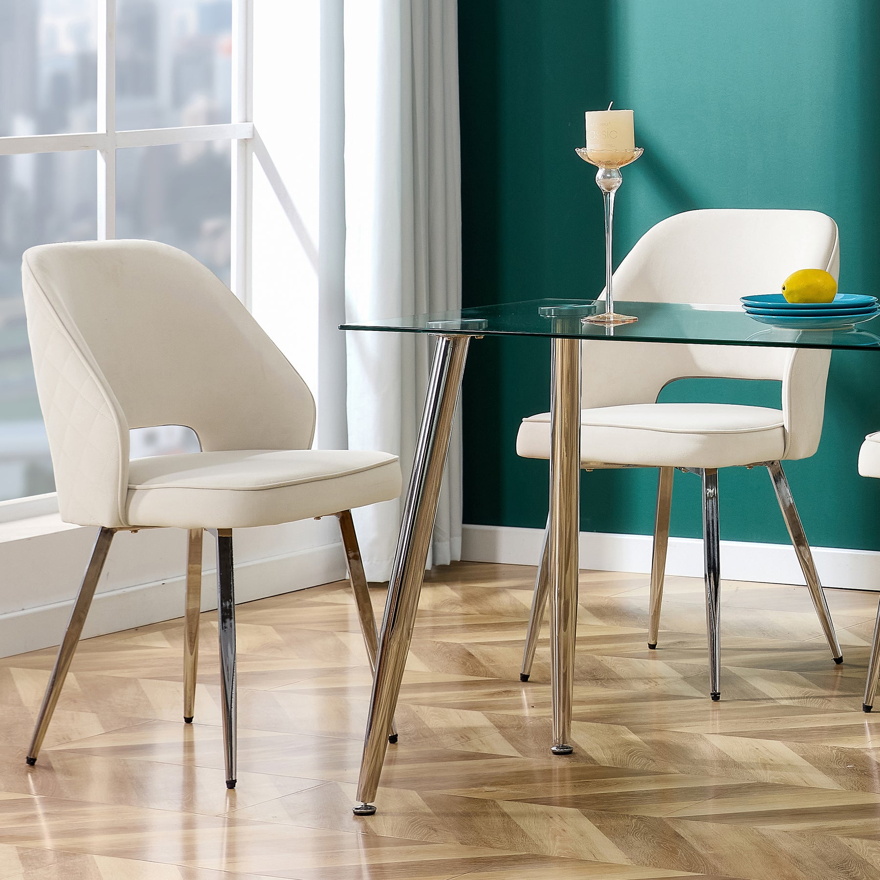 Set of 4 Modern Designed Accent Chair Upholstered Velvet Side Chair with Metal Legs- Light Beige