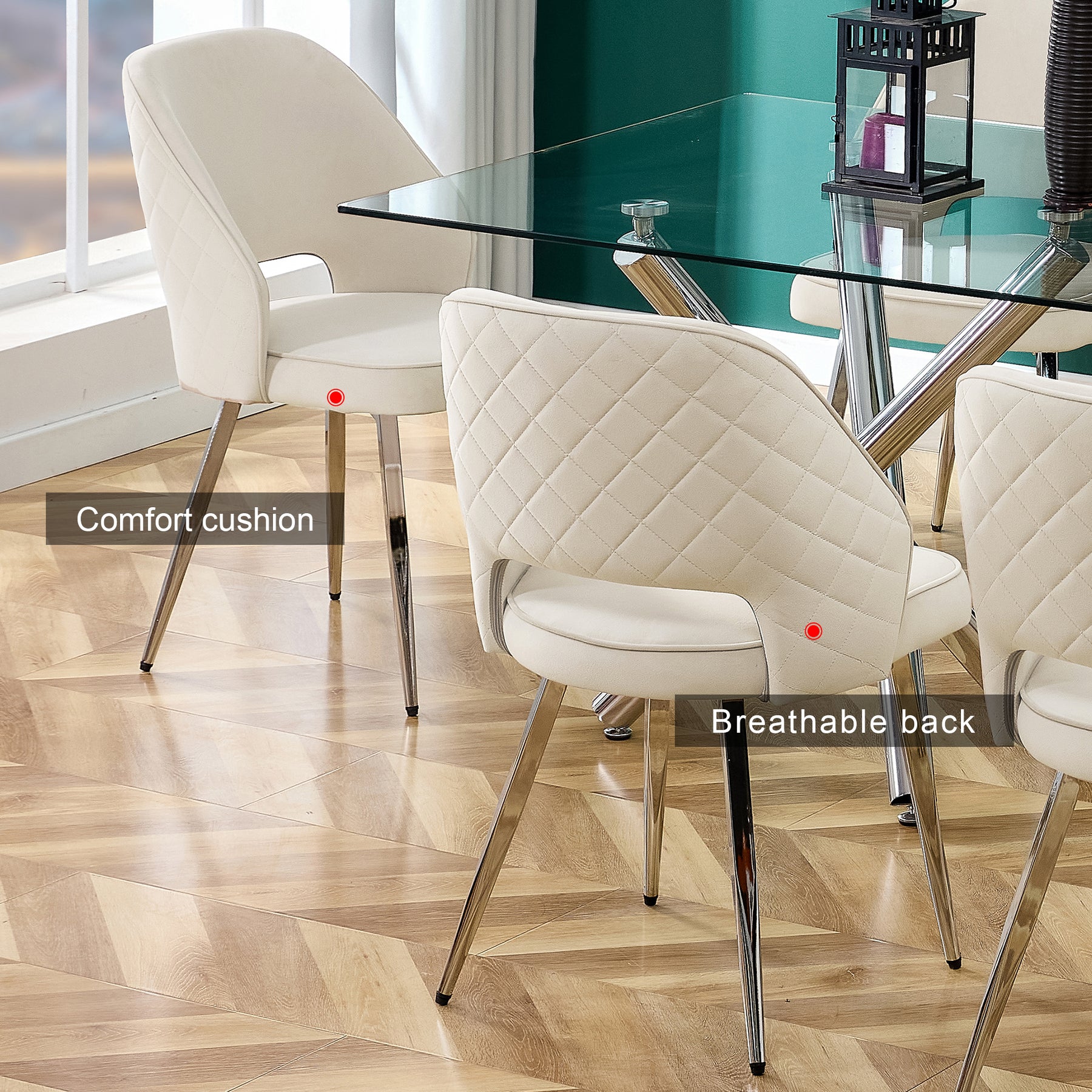 Set of 4 Modern Designed Accent Chair Upholstered Velvet Side Chair with Metal Legs- Light Beige_2