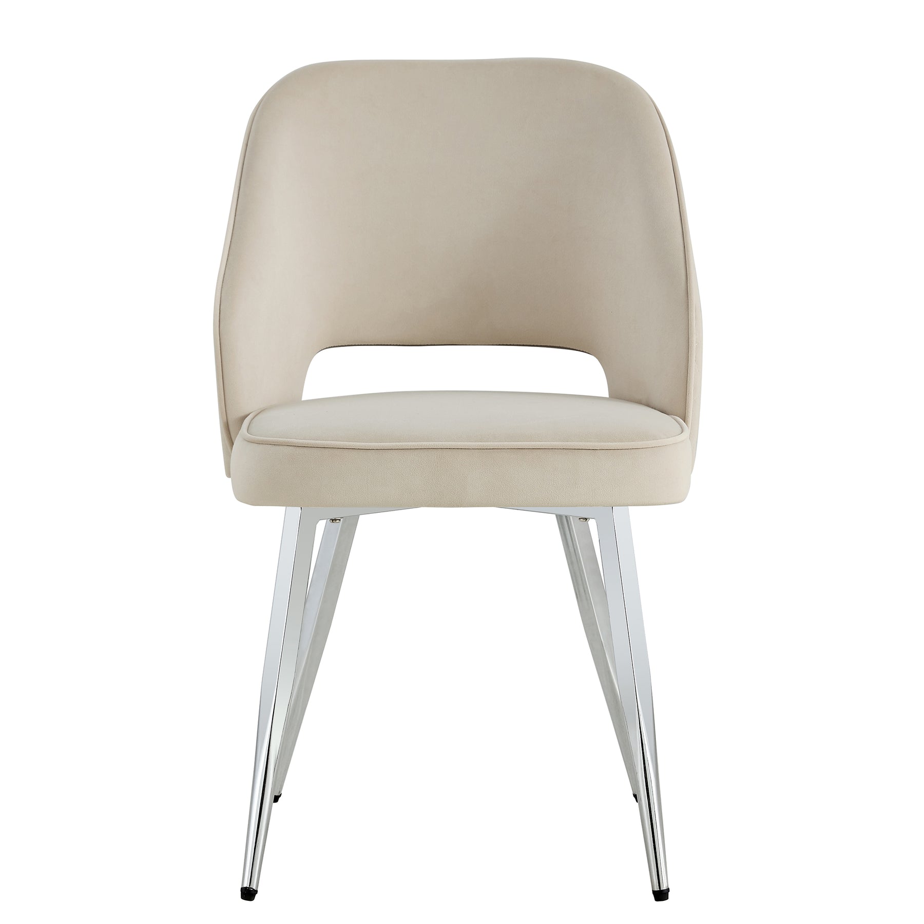 Set of 4 Modern Designed Accent Chair Upholstered Velvet Side Chair with Metal Legs- Light Beige_6