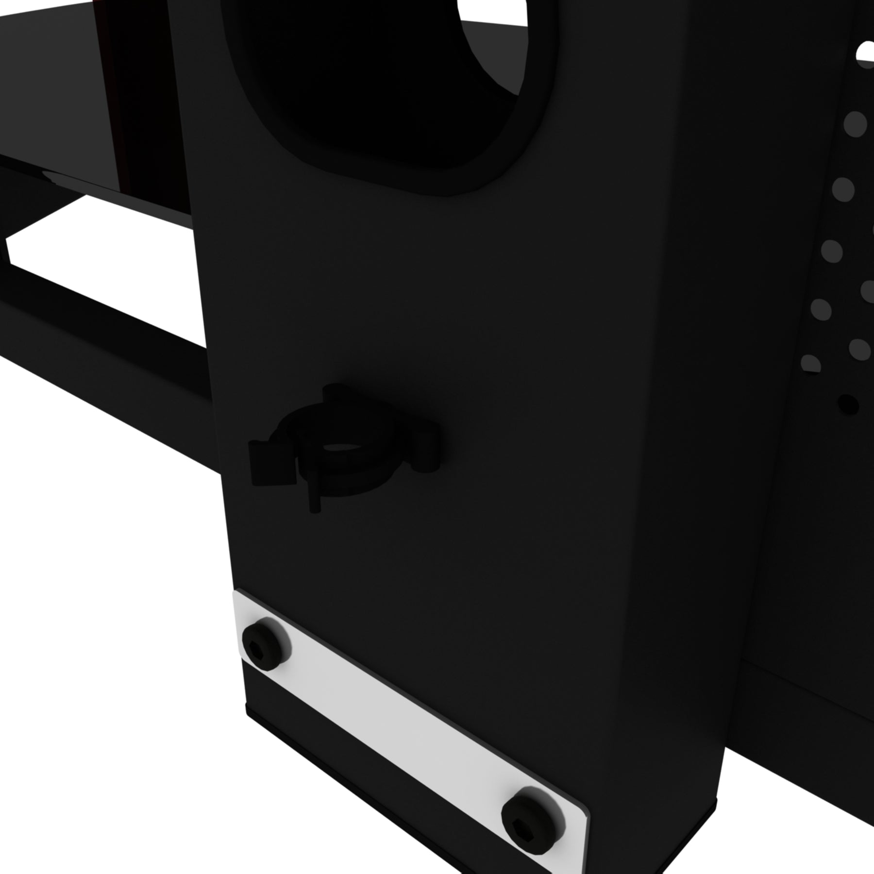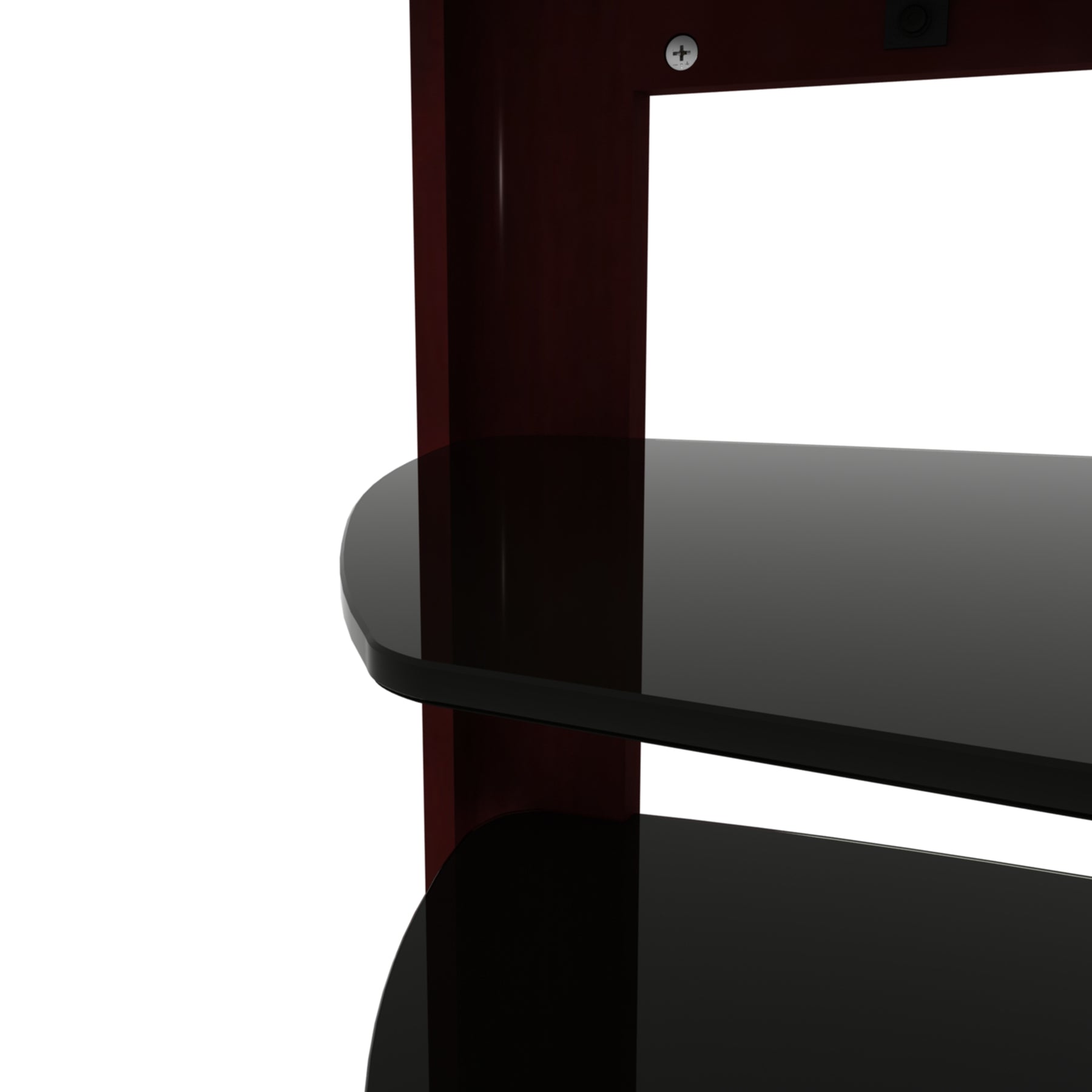 On the back of each tier of the TV stand has holes and cord management clips so power cords can be easily hidden if that's an important consideration for you. This TV stand is easy to assemble with easy-to-follow instructions and included accessories such as screws.