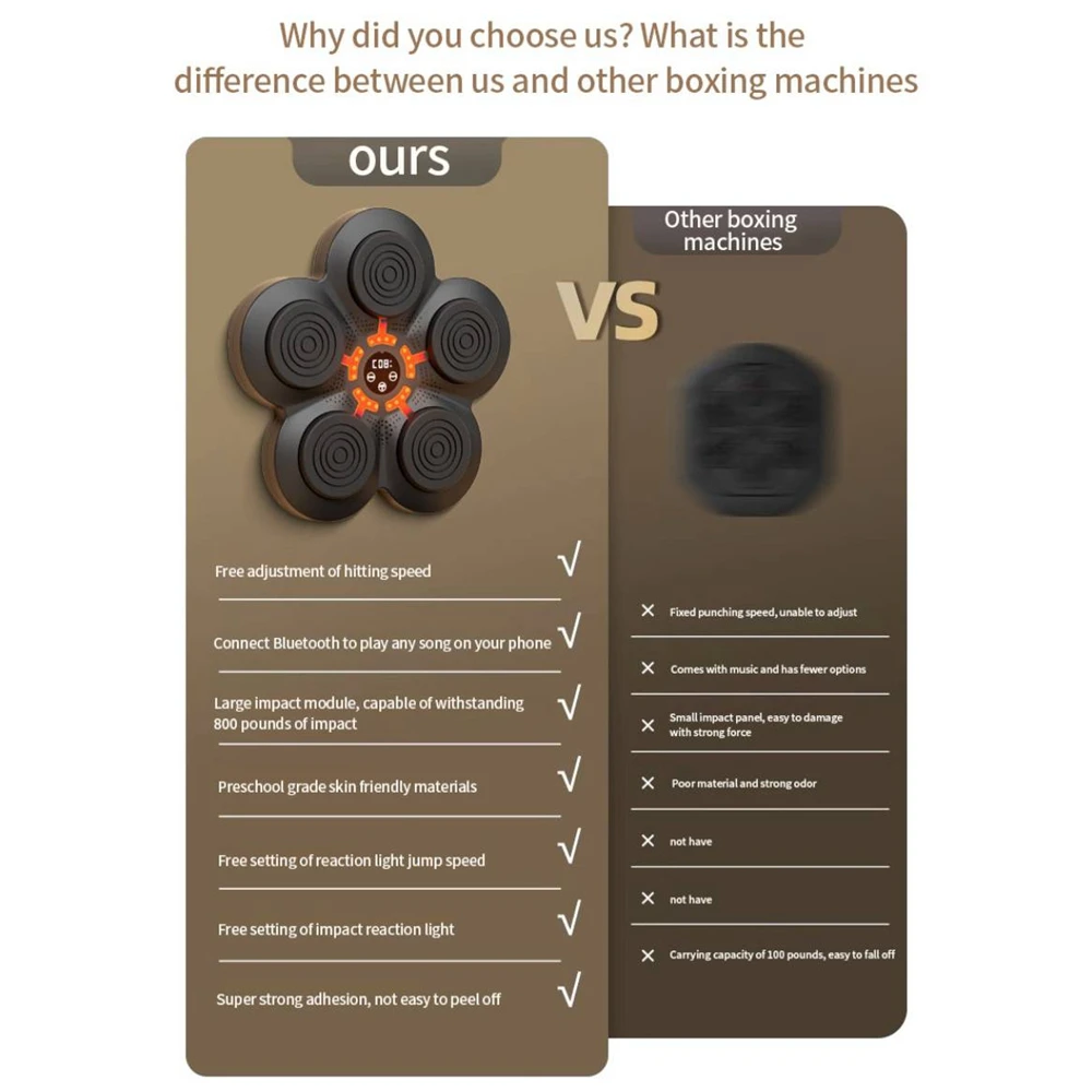 1.Adjustable Speed: Enjoy the freedom to adjust punching speed and set reaction light speed with this music boxing training machine. The large-sized punching module can withstand powerful impacts for an intense training session.