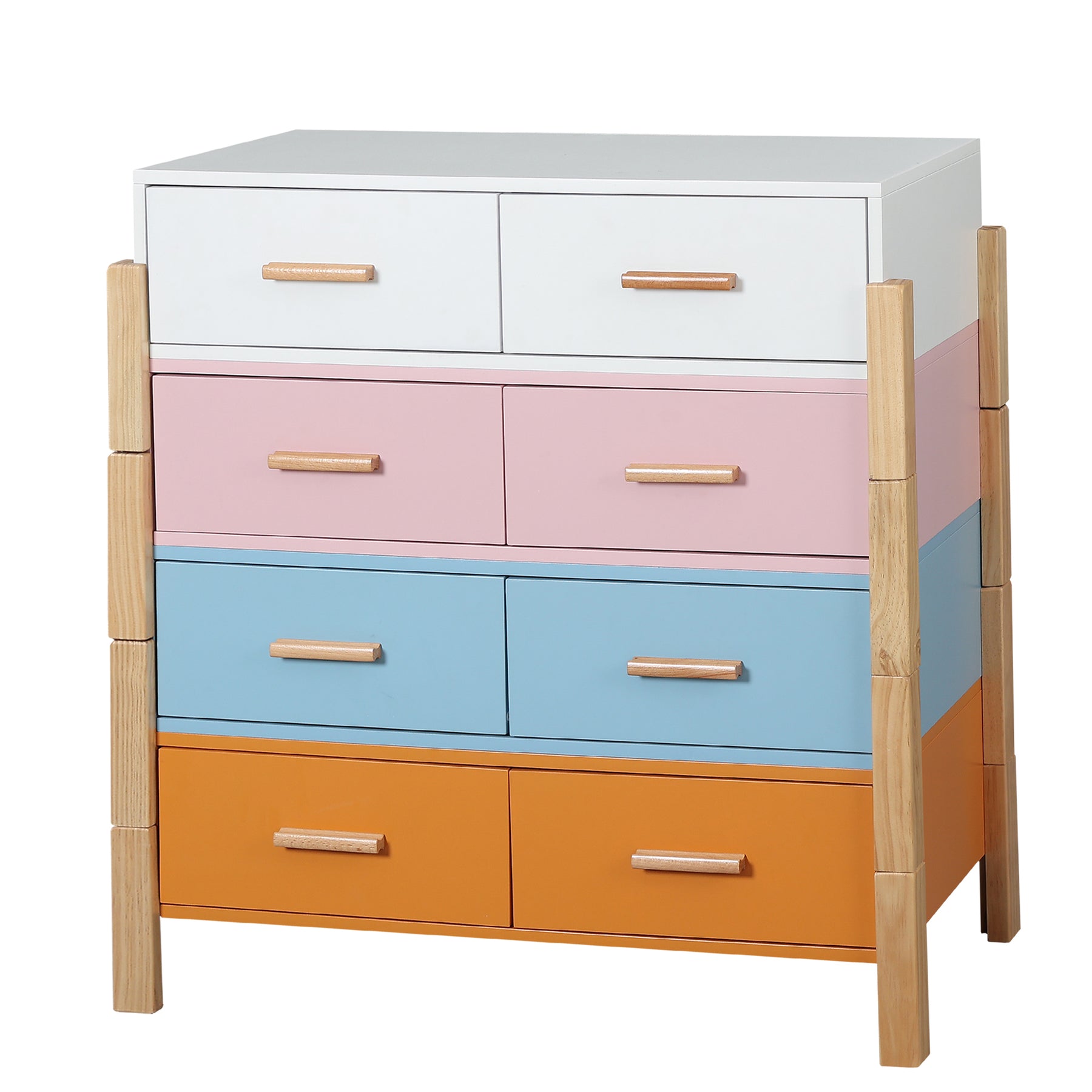 This modern dresser adds a touch of rustic charm to your bedroom decor. It is equipped with a multi-color finish which complements any decor style, suitable for your kid’s bedroom and playroom.