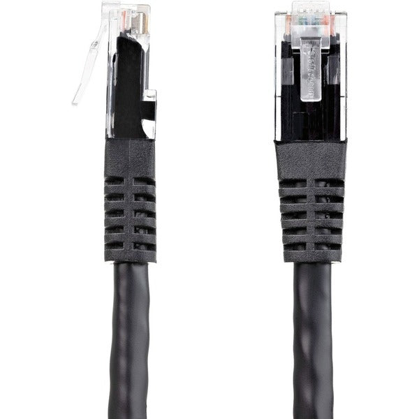 25ft Black CAT6 Ethernet cable delivers Multi Gigabit 1/2.5/5Gbps & 10Gbps up to 160ft - 650MHz - Fluke tested to ANSI/TIA-568-2.D Category 6 - 24 AWG stranded 100% copper UL Rated wire (E132276-A) - 100W PoE - 25 foot - ETL - Molded UTP patch cord General Information Manufacturer: StarTech.com Manufacturer Part Number: C6PATCH25BK Brand Name: StarTech.com Product Name: 25ft Black Cat6 UTP Patch Cable ETL Verified Marketing Information: The C6PATCH25BK Cat 6 Patch Cable (25 ft) meets or exceeds all Category 6 cable specifications to ensure reliable Gigabit network connections, and features a durable black PVC jacket that enables you to color code your network cable runs as needed. To ensure long-lasting performance, this high quality Cat 6 patch cable features molded PVC strain relief that prevents the RJ45 connector termination points from bending at sharp angles - reducing the risk of cable damage, which could decrease network performance. Constructed of only top quality materials, this Gigabit Patch Cable delivers reliable performance and is backed by our Lifetime Warranty. 100% Copper - a better value StarTech.com Cat6 cables are manufactured using high-quality copper conductors. While many cable manufacturers offer a "cheaper" cable, based on a copper-coated aluminum core, we make no compromises on quality to ensure you receive top value and performance for your network cable investment. 24 AWG Wire This Cat6 cable is constructed with 24 gauge copper wire, to support a broad range of Ethernet applications such as Power over Ethernet (PoE). Because we use a high quality copper wire, our cables easily sustain the power required for Power over Ethernet applications, whereas the inferior quality offered by copper-coated aluminum cables may be subject to insufficient power delivery, heat buildup, equipment damage and potentially, fire. 50-micron Gold Connectors This molded patch cable offers high quality connectors comprised of 50-micron gold, to deliver optimum conductivity while eliminating signal loss due to oxidation or corrosion. >More from the Manufacturer Product Type: Network Cable Technical Information Cable Type: Category 6 Cable Characteristic: Patch Cable Cable Length: 25 ft Connector Type on First End: RJ-45 Network - Male Connector on First End Details: 1 x RJ-45 Network - Male Connector Type on Second End: RJ-45 Network - Male Connector on Second End Details: 1 x RJ-45 Network - Male Connector Plating: Gold Features: Bend Resistant Features: Corrosion Resistant Features: Damage Resistant Features: Fray Resistant Features: Molded Features: PoE Features: PoE++ Features: Rust Resistant Features: Strain Relief Features: Stranded Jacket Type: CMG Device Supported: Distribution Panel Device Supported: Hub Device Supported: Network Device Device Supported: Security Device Device Supported: VoIP Device Device Supported: Wall Outlet Device Supported: Workstation American Wire Gauge: 24 AWG Data Transfer Rate: 10 Gbit/s Physical Characteristics Product Color: Black Jacket Material: Polyvinyl Chloride (PVC) Weight (Approximate): 0.70 lb Miscellaneous Environmentally Friendly: Yes Environmental Certification: REACH Environmental Certification: RoHS Environmental Certification: WEEE Country of Origin: China Warranty Limited Warranty: Lifetime