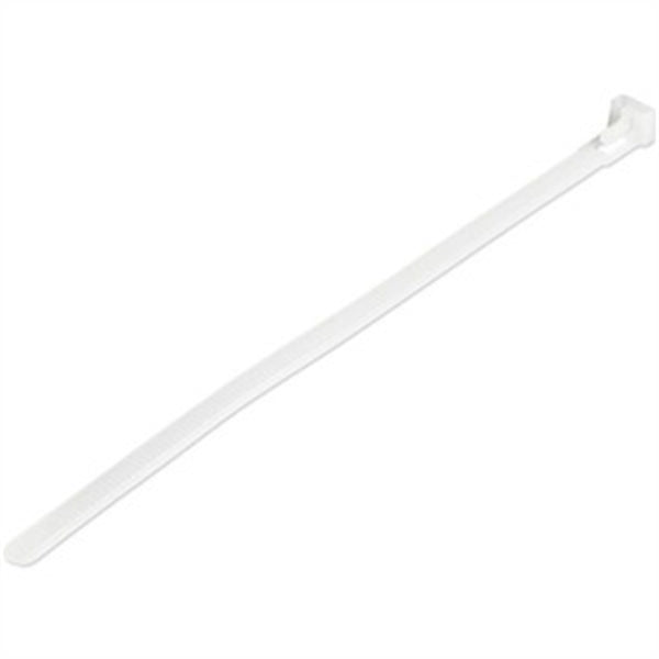 Reusable cable ties for 1.96in/50mm bundle diameter - Adjustable large resealable nylon/plastic zip wraps for electrical/network cable/Tool-less/Trigger lock/Industrial strength up to 50lb (22 Kg) /94V-2 Flame Rating/UL/TAA/100 Pack White General Information Manufacturer: StarTech.com Manufacturer Part Number: CBMZTRB8 Brand Name: StarTech.com Product Name: 100 Pack - 8 in. (203 mm) White Cable Ties (CBMZTRB8) Marketing Information: These Large Resealable Cable Ties enable you to conveniently bundle and secure multiple cables, to route and organize them. 100 White cable ties are included, ensuring you'll have plenty on hand. Reduce Waste and Keep Cables Organized These plastic electrical cable wraps are resealable and reuseable, enabling you to remove the cable tie, and attach it to different bundle, add additional cables into your bundle, or reroute your cables at any time using the same cable ties, saving you time and cost, while reducing waste. The cable ties are 8" (20 cm) in length securing cable bundles up to 1.96" (50 mm) in diameter. They're quick and easy to install or remove, with adjustable tension and a basic one-piece design -- perfect for organizing network cables, power cables, or other cables at your home or office workstation. Industrial Strength Made of durable Nylon 66 material, these cable ties are tough and flexible. They've been rigourously tested to support up to 50 lbs 22.7 kg of weight & are UL94 V-2 fire rated, UL Approved, and CE & Lloyd's Register Certified. Available in Different Lengths and Colors To suite any application, StarTech.com offers a wide selection of these cable ties in different lengths and colors: 100 Pack - 5 in. (125 mm) White Cable Ties (CBMZTRB5) 100 Pack - 5 in. (125 mm) Black Cable Ties (CBMZTRB5BK) 100 Pack - 6 in. (15 cm) White Cable Ties (CBMZTRB6) 100 Pack - 6 in. (15 cm) Black Cable Ties (CBMZTRB6BK) 100 Pack - 8 in. (20 cm) White Cable Ties (CBMZTRB8) 100 Pack - 8 in. (20 cm) Black Cable Ties (CBMZTRB8BK) 100 Pack - 10 in. (25 cm) White Cable Ties (CBMZTRB10) 100 Pack - 10 in. (25 cm) Black Cable Ties (CBMZTRB10BK) These reusable cable wraps are backed by a StarTech.com Lifetime warranty and free 24/5 technical support. StarTech.com has been the IT professionals choice for over 30 years. Packaged Quantity: 100 Product Type: Cable Tying Product Information Cable Manager Type: Cable Tie Physical Characteristics Product Color: White Product Material: Nylon 66 Height: 0.10" Width: 0.30" Length: 7.90" Weight (Approximate): 0.10 oz Miscellaneous Environmentally Friendly: Yes Environmental Certification: REACH Environmental Certification: RoHS Country of Origin: Taiwan TAA Compliant: Yes Warranty Limited Warranty: 2 Year