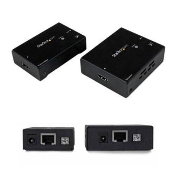 Extend HDMI up to 230ft (70m) over a single CAT 5e / Cat 6 cable with Power over Cable to Receiver - HDMI Over Single CAT5e or CAT6 Ethernet Extender with Power Over Cable - HDMI Extender Over CAT5e or CAT6 w/ POC Extender - 230 ft (70m) - 1080p General Information Manufacturer: StarTech.com Manufacturer Part Number: ST121HDBTE Brand Name: StarTech.com Product Name: HDMI over CAT5 HDBaseT Extender - Power over Cable - Ultra HD 4K Marketing Information: The StarTech.com HDBaseT extender kit, extends HDMI up to 230 feet (70 Meters) over a single CAT5e or CAT6 cable. The extender supports Ultra HD and Full HD resolutions (4K / 1080p) with support for 3D and the accompanying digital audio. For added versatility, both the transmitter and receiver can be powered by the same single power source using Power Over Cable (POC). The versatility of this video extender makes it an ideal solution for digital signage applications in large buildings such as commercial shopping centers, stadiums, schools, and hospitals. What is HDBaseT? HDBaseT is a standardized, zero latency, video distribution technology that's revolutionizing HDMI distribution. HDBaseT uses an advanced method of modulation that enables you to distribute uncompressed HDMI audio and video along with additional signals such as 100BaseT Ethernet, IR, RS-232 serial and power over cable. Extend more with HDBaseT The extender offers HDBaseT technology with HDMI and Power in a single extender kit, for complete end-to-end solution. Offering greater versatility than traditional HDMI extenders or HDMI cabling alone HDBaseT is the clear choice for every integrator and system designer. The added benefit of power over cable means you'll only need one power source at either side of your extension, great for extending video to areas where power outlets may be limited, such as industrial sites. Astonishing 4K picture quality from an impressive distance With the A/V industry quickly adopting 4K as the new high-resolution video standard, long range video distribution can be a challenge with standard HDMI cables beginning signal degradation at 30 feet. With support for 4K you'll be amazed at how HDBaseT maintains your Ultra HD picture quality, four times the resolution of high-definition 1080p, even at 130 feet away from your video source. Plus, because the extender supports High-Definition 1080p and lower resolutions at 230 feet away, you can comfortably use this extender to make any video source look great. Simplify your setup This extender has been specially crafted for a smooth, tidy installation. HDBaseT technology allows for single cable installation, for seamless integration using existing CAT5e or CAT6 infrastructure, avoiding the hassle of running multiple Ethernet cables while, reducing potential failure points. Plus, the added benefit of power over cable means you'll only need one power source to power both your extender and receiver, great for extending to areas where power outlets may be limited. Mounting hardware is also included for both the extender and receiver for discrete, professional mounting. The ST121HDBTE is TAA compliant and backed by a 2-year StarTech.com warranty with free lifetime technical support. >More from the Manufacturer Product Type: Video Extender Transmitter/Receiver Technical Information Connectivity Technology: Wired Number of Input Devices Supported: 1 Number of Output Devices Supported: 1 Maximum Operating Distance: 229.66 ft Video Graphics Modes: 4K Maximum Video Resolution: 4096 x 2160 Interfaces/Ports Network (RJ-45): Yes HDMI In: Yes HDMI Out: Yes Number of Network (RJ-45) Ports: 2 Number of HDMI Inputs: 1 Number of HDMI Outputs: 1 Media & Performance Media Type Supported: Twisted Pair Twisted Pair Cable Standard: Category 6 Power Description Input Voltage: 110 V AC Input Voltage: 220 V AC Physical Characteristics Product Color: Black Product Material: Aluminum Transmitter Height: 1" Transmitter Width: 2.60" Transmitter Depth: 3.10" Receiver Height: 1" Receiver Width: 2.60" Receiver Depth: 3.10" Length: 3.1" Transmitter Weight (Approximate): 15.10 oz Receiver Weight (Approximate): 15.10 oz Miscellaneous Package Contents: 1 x HDMI over CAT5e/6 Transmitter unit 1 x HDMI over CAT5e/6 Receiver unit 1 x Mounting Bracket Kit 1 x Universal Power Adapter (NA/EU/UK/AU) 1 x Cat5e Cable 2 x Grounding Wires 1 x Instruction Manual Certifications & Standards: CEFCC Environmentally Friendly: Yes Environmental Certification: REACH Environmental Certification: RoHS Environmental Certification: WEEE Country of Origin: Taiwan TAA Compliant: Yes Warranty Limited Warranty: 2 Year