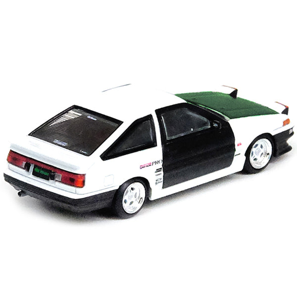 Toyota Sprinter Trueno AE86 RHD (Right Hand Drive) White with Green Carbon Hood and Black Carbon Doors 1/64 Diecast Model Car by Inno Models
