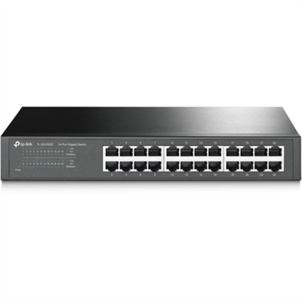 Plug & Play - Shielded Ports - Sturdy Metal - Fanless Quiet - Traffic Optimization - Unmanaged General Information Manufacturer: TP-LINK Technologies Co., Ltd Manufacturer Part Number: TL-SG1024S Brand Name: TP-Link Product Model: TL-SG1024S Product Name: 24-Port Gigabit Desktop/Rackmount Switch Marketing Information: What This Product Does The TL-SG1024S Gigabit Ethernet Switch provides you with a high-performance, low-cost, easy-to-use, seamless and standard upgrade to improve old network to 1000Mbps network. All 24 ports support auto MDI/MDIX, no need to worry about the cable type, simply plug and play. Moreover, with the innovative energy-efficient technology, the TL-SG1024S can save power consumption and 80% of the packaging material can be recycled, making it an eco-friendly solution for your business network.TP-LINK Green Technology This new generation TL-SG1024S Gigabit Switch features the latest innovative energy-efficient technologies that can greatly expand your network capacity with much less power. It automatically adjusts power consumption according to the link status to limit the carbon footprint of your network. It also complies with the EU'S RoHS, prohibiting the use of certain hazardous materials. Besides, 80% of the packaging material can be recycled.High Performance All 24 ports are Gigabit RJ-45 ports which can provide large file transferring and also be compatible with 10Mbps and 100Mbps Ethernet devices. Featuring non-blocking switching architecture, TL-SG1024S forwards and filters packets at full wire-speed for maximum throughput. With 10KB Jumbo frame, the performance of large files transfers is improved significantly. And IEEE 802.3x flow control for Full Duplex mode and backpressure for Half Duplex mode alleviate the tra?ffic congestion and make The TL-SG1024S work reliably. It's a perfect choice to update your network to Gigabit while protecting your previous investment properly. Easy to Use The auto features of this gigabit switch make installation plug and play and hassle-free. No configuring is required. Auto MDI/MDIX eliminates the need for crossover cables. Auto-negotiation on each port senses the link speed of a network device (10, 100, or 1000 Mbps) and intelligently adjusts for compatibility and optimal performance. Product Type: Ethernet Switch Interfaces/Ports Total Number of Network Ports: 24 Modular: No Stack Port: No Network (RJ-45): Yes Port/Expansion Slot Details: 24 x Gigabit Ethernet Network Media & Performance Media Type Supported: Twisted Pair Ethernet Technology: Gigabit Ethernet Network Technology: 10/100/1000Base-T Network & Communication Layer Supported: 2 Networking Standards: IEEE 802.3ab Networking Standards: IEEE 802.3i Networking Standards: IEEE 802.3u Networking Standards: IEEE 802.3x Management & Protocols Manageable: No Power Description Input Voltage: 120 V AC Input Voltage: 230 V AC Frequency: 50 Hz Frequency: 60 Hz Power Source: Power Supply Power Consumption: 13.60 W Physical Characteristics Form Factor: Desktop Form Factor: Rack-mountable Height: 1.7" Width: 11.6" Depth: 7.1" Miscellaneous Package Contents: 24-Port Gigabit Desktop/Rackmount Switch Power Cord Installation Guide Rackmount Kit Rubber Feet Environmentally Friendly: Yes Environmental Certification: RoHS Country of Origin: China Warranty Limited Warranty: 2 Year