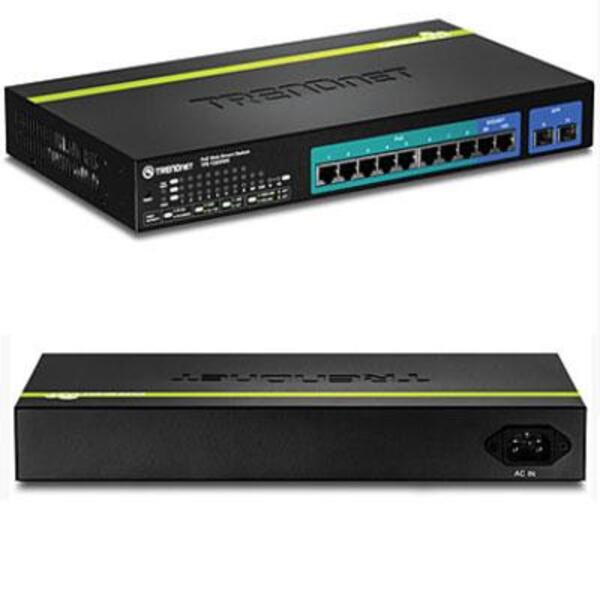 TRENDnet 10-Port Gigabit Web Smart PoE+ Switch, 8 x PoE+ Gigabit Ports, 2 x Gigabit Ethernet Ports, 2 x Shared SFP Slots, 75W Total Power Budget, Rack Mountable, Lifetime Protection, Black, TPE-1020WS