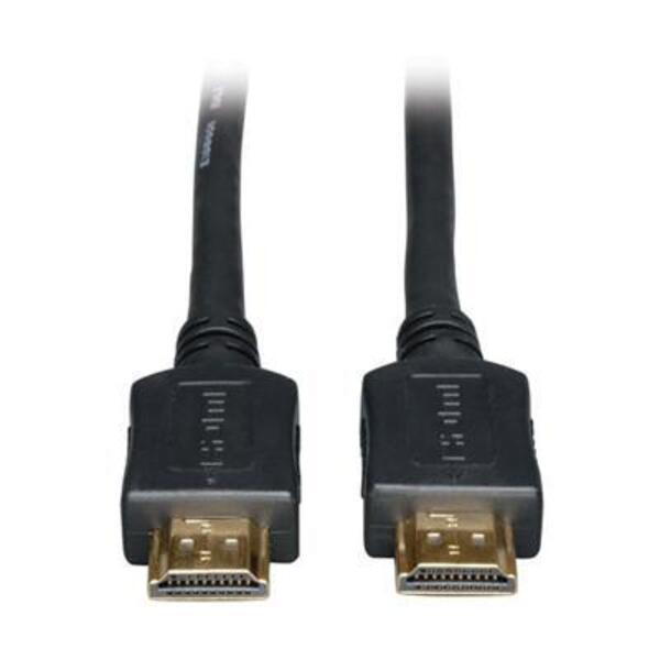 Type A Male HDMI - Type A Male HDMI - 50ft - Black General Information Manufacturer: Tripp Lite by Eaton Manufacturer Part Number: P568-050 Brand Name: Tripp Lite Product Series: Gold Product Model: P568-050 Product Name: P568-050 HDMI Gold Digital Video Cable Marketing Information: Tripp Lite's 50-ft. Standard Speed HDMI(High-Definition Multimedia Interface) Gold Cable allows interconnection between digital display devices, such as DTV's(Digital Television), Plasma displays, LCD TV's and projectors, to Digital source devices, such as Digital Set-Top boxes, Blu-Ray players and AV receivers. Supports iPad2 Video Mirroring when used with Apple Digital AV Adapter. HDMI assures that the best audio/video signal is always sent from the source(HDTV signal, Blu-Ray Player) to the display(Projection Television, LCD, Plasma, etc.). It does this by allowing uncompressed video and multi-channel audio data to be input to the display device through a single cable. An HDMI connection allows input at standard rates of speed, up to 10.2 Gbps. In most applications, a signal booster(B122-000-60) will need to be used with this cable to ensure a signal strong enough for your display. Product Type: Video Cable Technical Information Cable Type: HDMI Cable Length: 50 ft Connector Type on First End: HDMI Type A Digital Audio/Video - Male Connector on First End Details: 1 x 19-pin HDMI Type A Digital Audio/Video - Male Connector Type on Second End: HDMI Type A Digital Audio/Video - Male Connector on Second End Details: 1 x 19-pin HDMI Type A Digital Audio/Video - Male Conductor: Copper Physical Characteristics Product Color: Black Miscellaneous Package Contents: P568-050 HDMI Gold Digital Video Cable50ft HDMI to HDMI Gold Digital Video Cable - HDMI-M/HDMI-M Additional Information: Allows interconnection between digital display devices, such as DTV's ( Digital Television ), Plasma displays, LCD TV's, and projectors, to Digital source devices, such as Digital Set-Top boxes, DVD/DVD-R players, and AV receivers Country of Origin: China Warranty Limited Warranty: Lifetime