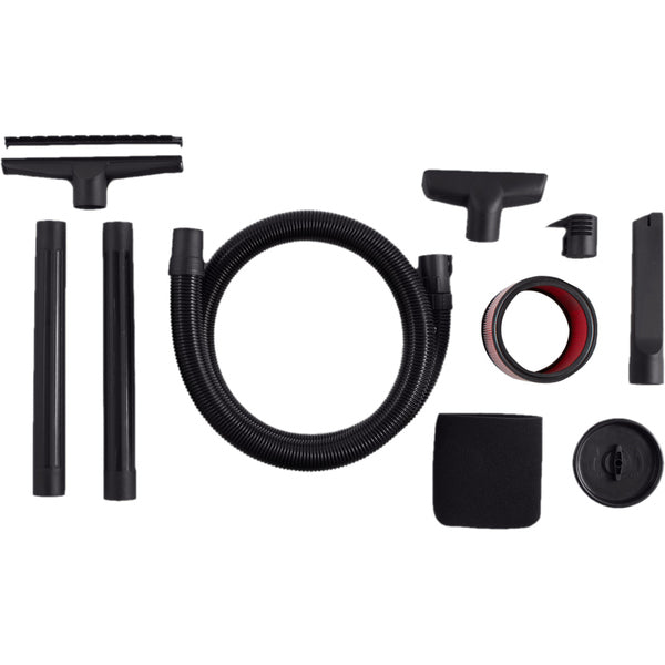 12 Gallon Beast Professional Wet/Dry Vac with high performance motor and Hose storage. Best-In-Class suction power and air flow easily tackles tough jobs around the jobsite and workship (370 air watts, 143 CFM, and 60 in. water lift) Integrated hose storage - For hassle-free storage when not in use Storage on casters and power head - Accessories are easily accessible when needed and stowed when not in use Integrated power cord wrap and storage hook for convenient storage Heavy duty 360? swivel casters improve mobility Quickly converts to a blower for jobsite, shop, or garage cleanup General Information Manufacturer: Cleva North America Manufacturer Part Number: VJH1211PF 0201 Brand Name: Vacmaster Product Line: Beast Product Model: VJH1211PF 0201 Product Name: Beast VJH1211PF 0201 Canister Vacuum Cleaner Marketing Information: This Vacmaster Professional Beast Series 12-Gallon 5.5 Peak HP Wet/Dry Vac is a powerful high-performance vac designed to tackle the toughest cleanup projects-at the jobsite, around the shop, or in the garage.On-board hose, accessory, and power cord storage eliminates unneeded hassle and minimizes total storage space. A unique flat power head design allows you to conveniently store tools on top of the vacuum so they are easily accessible when needed. Over 27 ft. of cleaning reach (7' hose and 20' power cord) allows you to reach farther without unplugging the unit. Quickly control the power with the large dust sealed on/off switch. Heavy duty 360 swivel casters improve mobility on most surfaces. It also includes 9 accessories for nearly any task: 7 ft. x 2-1/2 in. kink resistant premium hose, utility nozzle, crevice tool, (2) extension wands, floor nozzle with squeegee & brush, fine dust cartridge filter, foam wet filter, and air & noise diffuser. Best-In-Class suction power and air flow easily tackles tough jobs around the jobsite and workshop (370 air watts, 143 CFM, and 60 in. water lift) Integrated hose, accessory and power cord organization provide space saving, convenient, and hassle-free storage Includes 7 ft. x 2-1/2 in. kink resistant premium hose, utility nozzle, crevice tool, (2) extension wands, floor nozzle with squeegee & brush, fine dust cartridge filter, foam wet filter, and air & noise diffuser Best-In-Class suction power and air flow easily tackles tough jobs around the jobsite, shop, or in the garage(370 air watts, 143 CFM, and 60 in. water lift) Integrated hose storage - For hassle-free storage when not in use Storage on casters and power head - Accessories are easily accessible when needed and stowed when not in use Integrated power cord wrap and storage hook for convenient storage Includes 7 ft. x 2-1/2 in. kink resistant premium hose, utility nozzle, crevice tool, (2) extension wands, floor nozzle with squeegee & brush, fine dust cartridge filter, foam wet filter, and air & noise diffuser Heavy duty 360 swivel casters improve mobility Unique flat power head design - Convenient resting place for tools during a job Over 27 ft. of cleaning reach (7' hose and 20' power cord) allows you to reach farther without unplugging the unit Large 12-Gallon collection tank with extra-large quick empty liquid drain Large on/off dust sealed switch for easy control and balanced top handle design for improved comfort Quickly converts to a blower for jobsite, shop, or garage cleanup Limited Warranty: 5 Years Product Type: Canister Vacuum Cleaner Technical Information Motor: 4101.35 W Air Watts: 369.70 W Air Flow: 1069.7 gal/min Dust Collection: Bagged Dust Capacity: 12 gal Operating Radius: 27 ft Cable Length: 20 ft Hose Length: 84" Attachments: Brush Attachments: Crevice Tool Attachments: Extension Wand Attachments: Filter Attachments: Floor Tool Attachments: Hose Attachments: Squeegee Attachments: Utility Nozzle Application/Usage: Automotive Application/Usage: Garage Application/Usage: Workshop Floor Type: Bare Floor Floor Type: Carpet Floor Type: Concrete Floor Type: Laminate Floor Floor Type: Tile Floor Floor Type: Vinyl Floor Floor Type: Wooden Floor Power Description Power Source: AC Supply Input Voltage: 120 V AC Input Current: 10.50 A Physical Characteristics Product Color: Black Height: 22.1" Width: 20.1" Depth: 18.3" Weight (Approximate): 15.65 lb Miscellaneous Package Contents: Beast VJH1211PF 0201 Canister Vacuum Cleaner 7 Ft. x 2-1/2 In. Hose 2 x Extension Wands Fine Dust Cartridge Filter Foam Wet Filter High Effiency Dust Bag 14 In. Floor Nozzle 8 In. Utility Nozzle Air/Noise Diffuser Warranty Limited Warranty: 5 Year